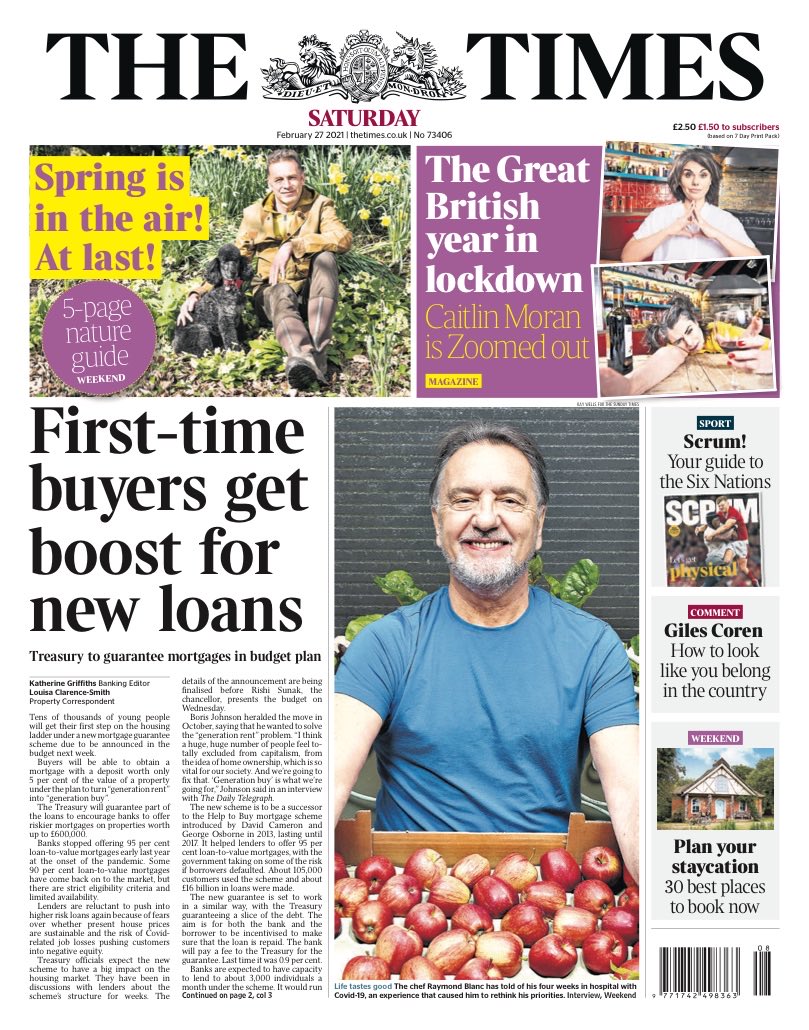 The Times says tens of thousands of young people will get their first step on the housing ladder under a new mortgage guarantee scheme due to be announced in the Budget next week.