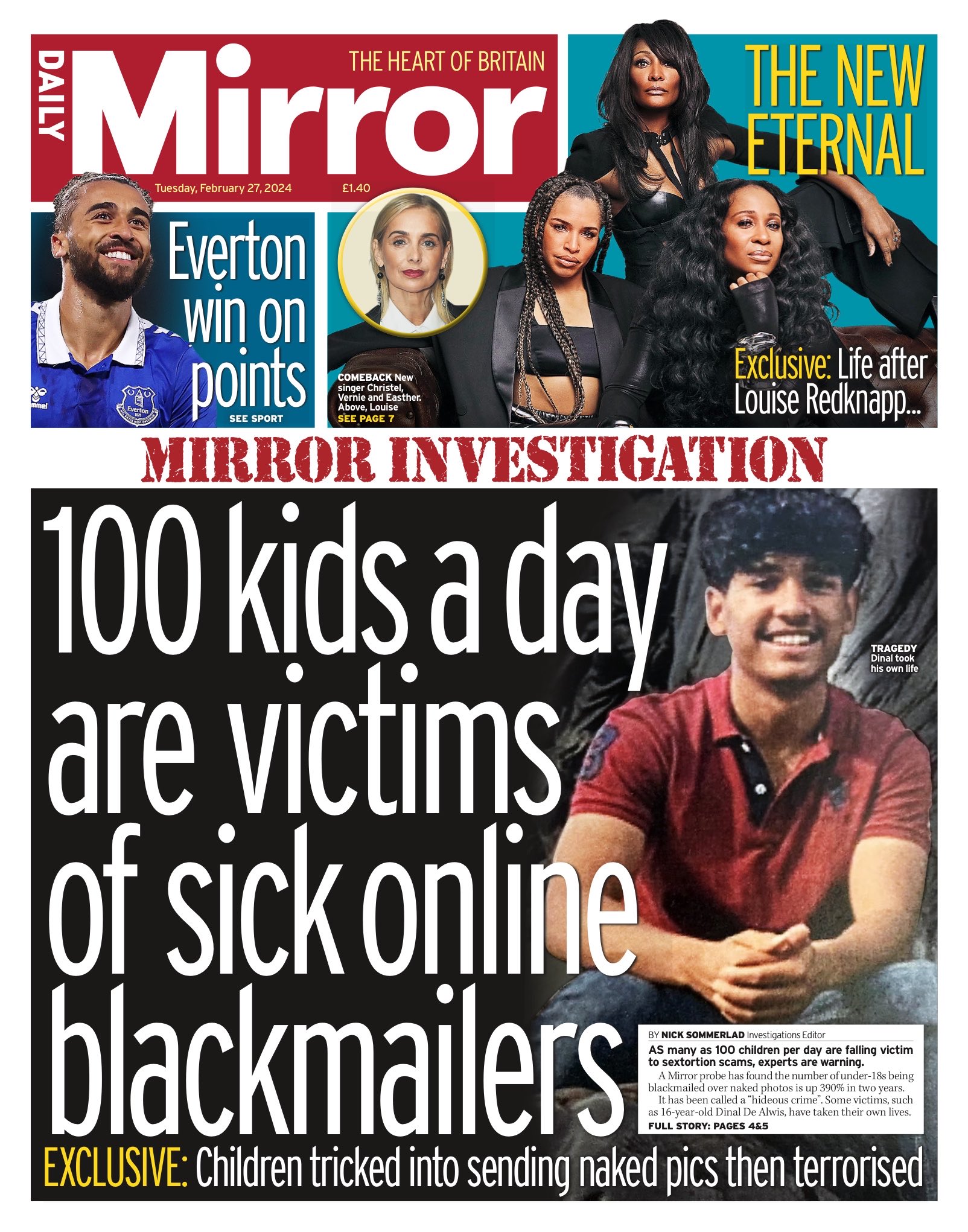 The Daily Mirror reports on the alarming rise in ‘sextortion’ scams targeting up to 100 children daily.