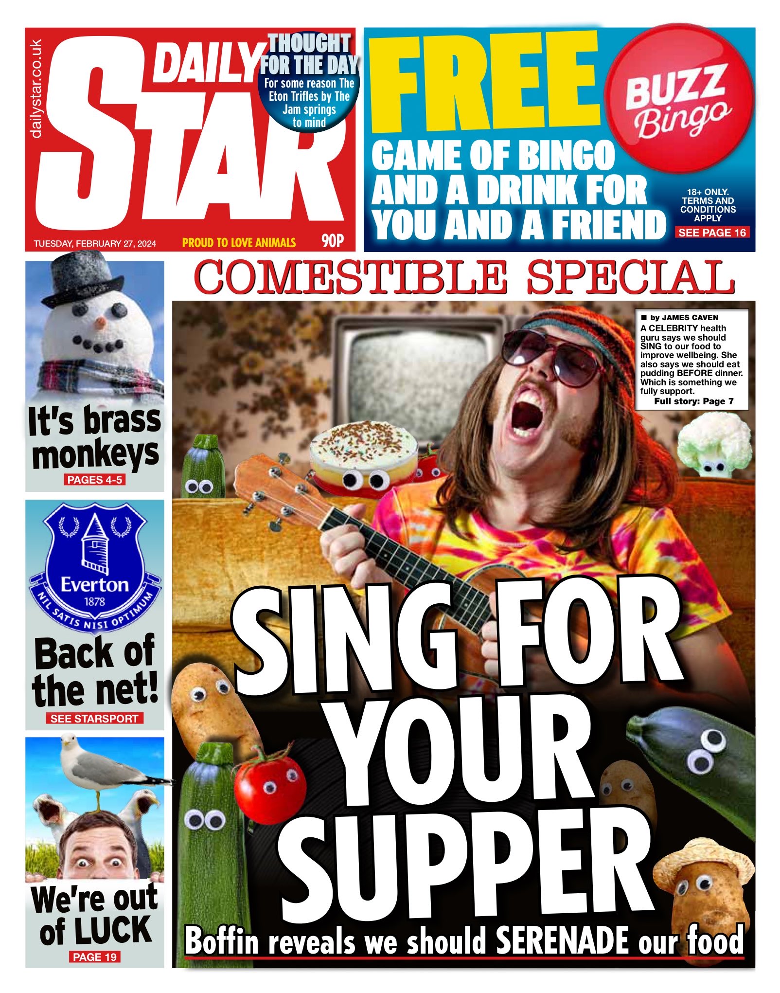 The Daily Star features a celebrity health expert advocating for singing to food as a wellness booster.