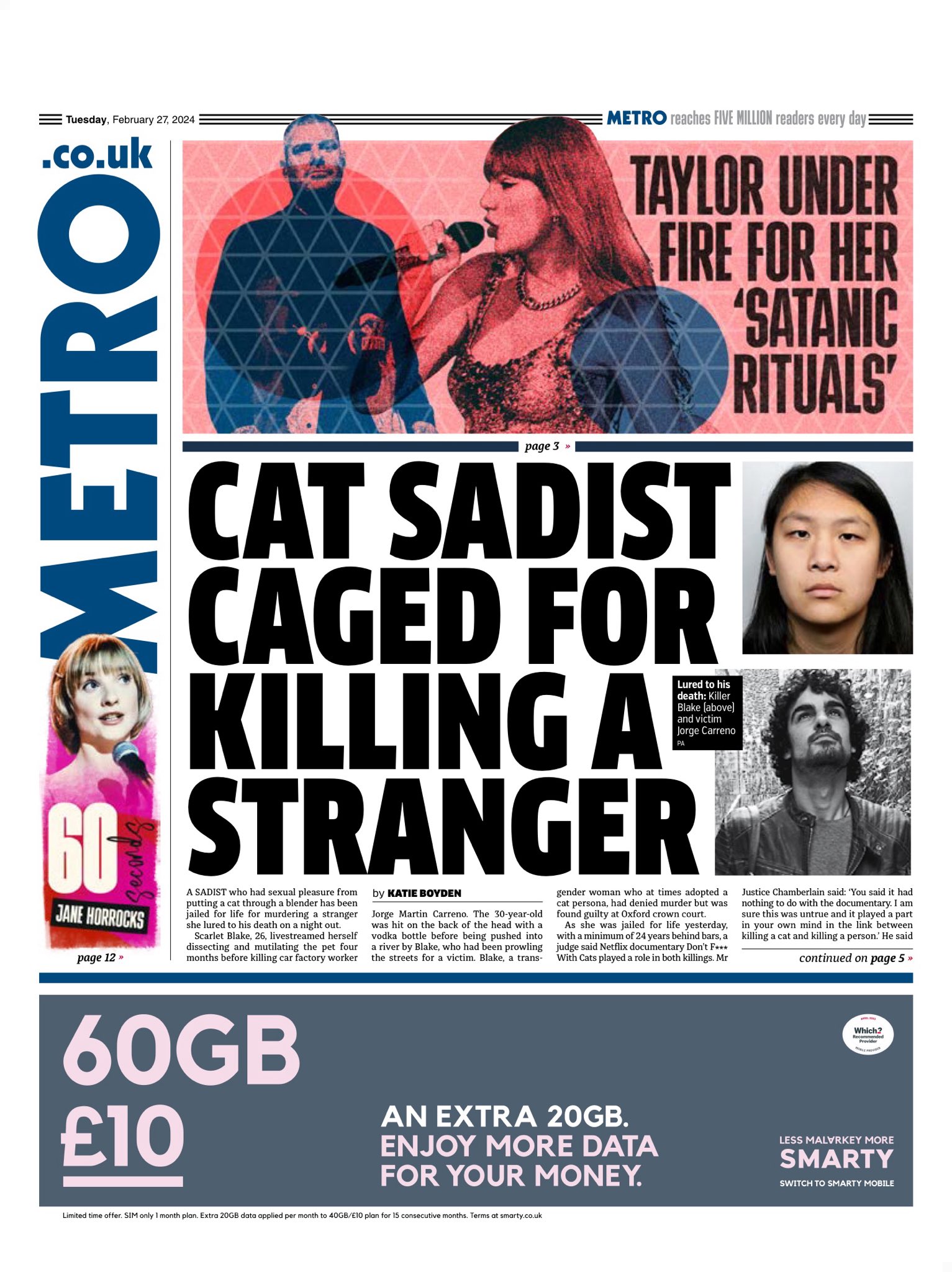 The Metro reports on the life sentence of a transgender woman who murdered a man in Oxford.
