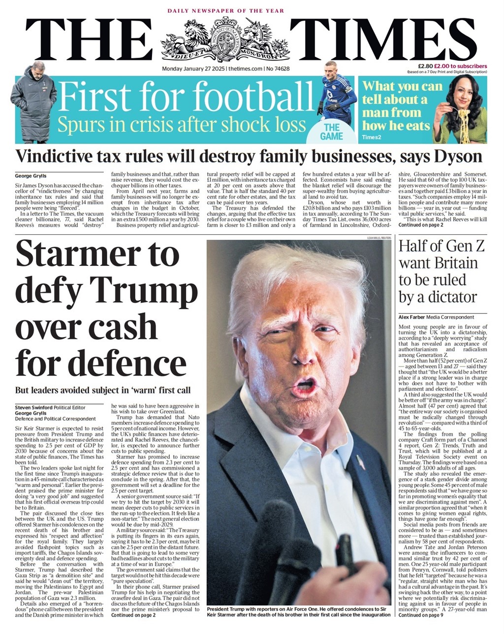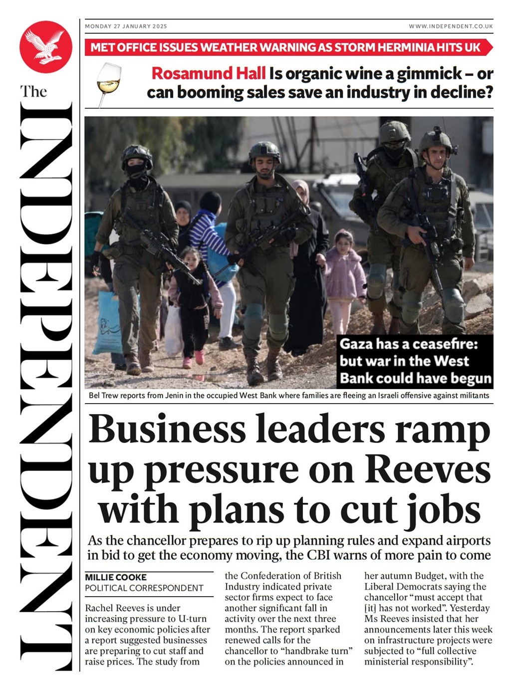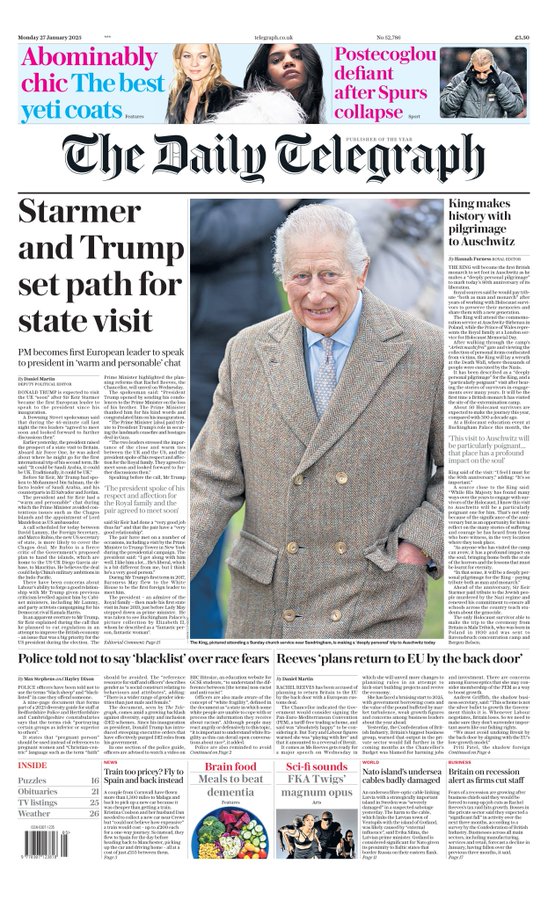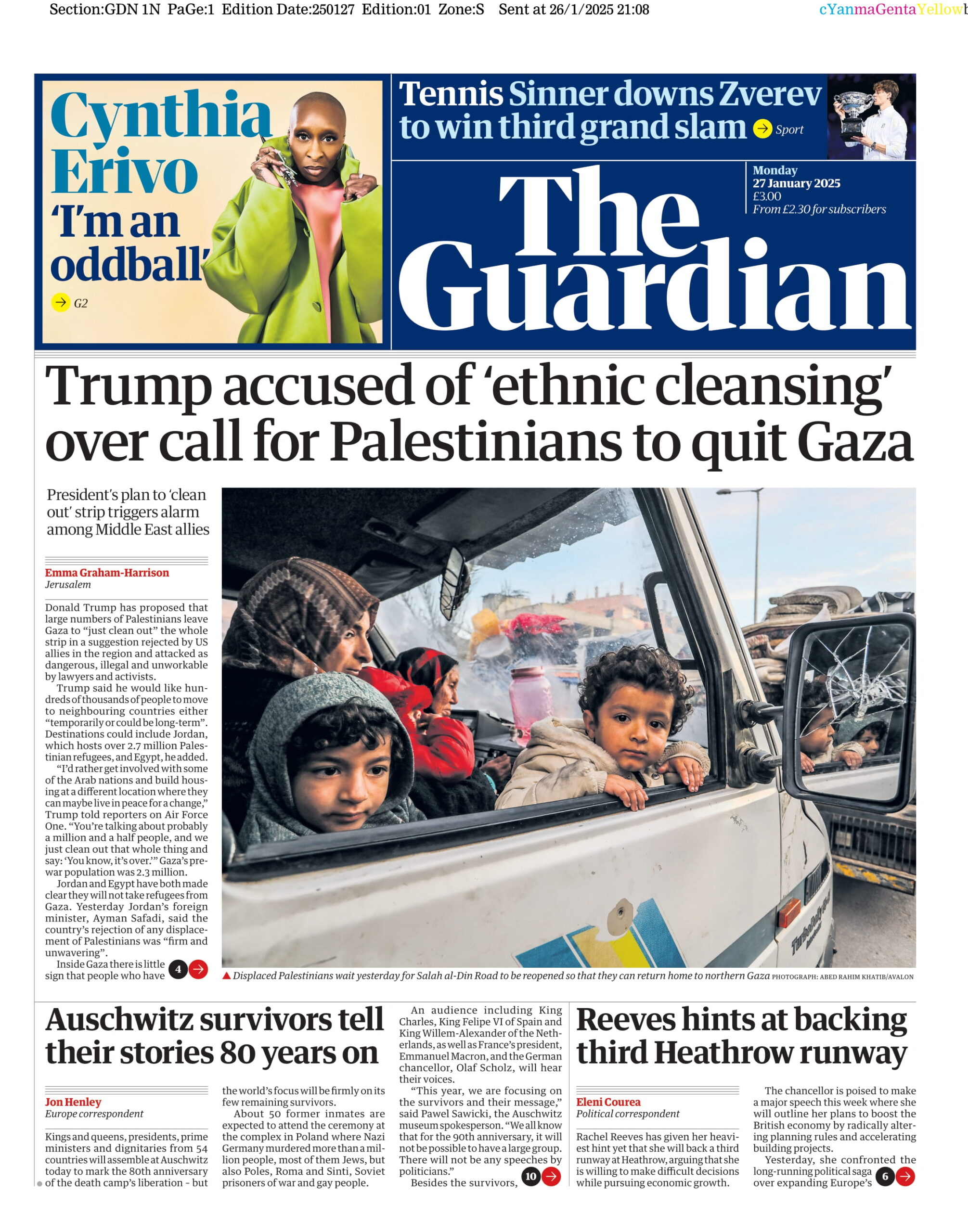 Guardian Front Page 27th of January 2025