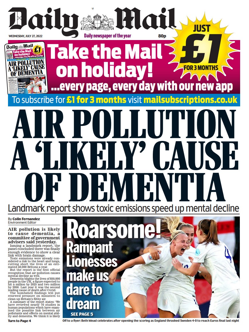 According to a report by a government advisers’ committee, air pollution may cause dementia, the Daily Mail reported.