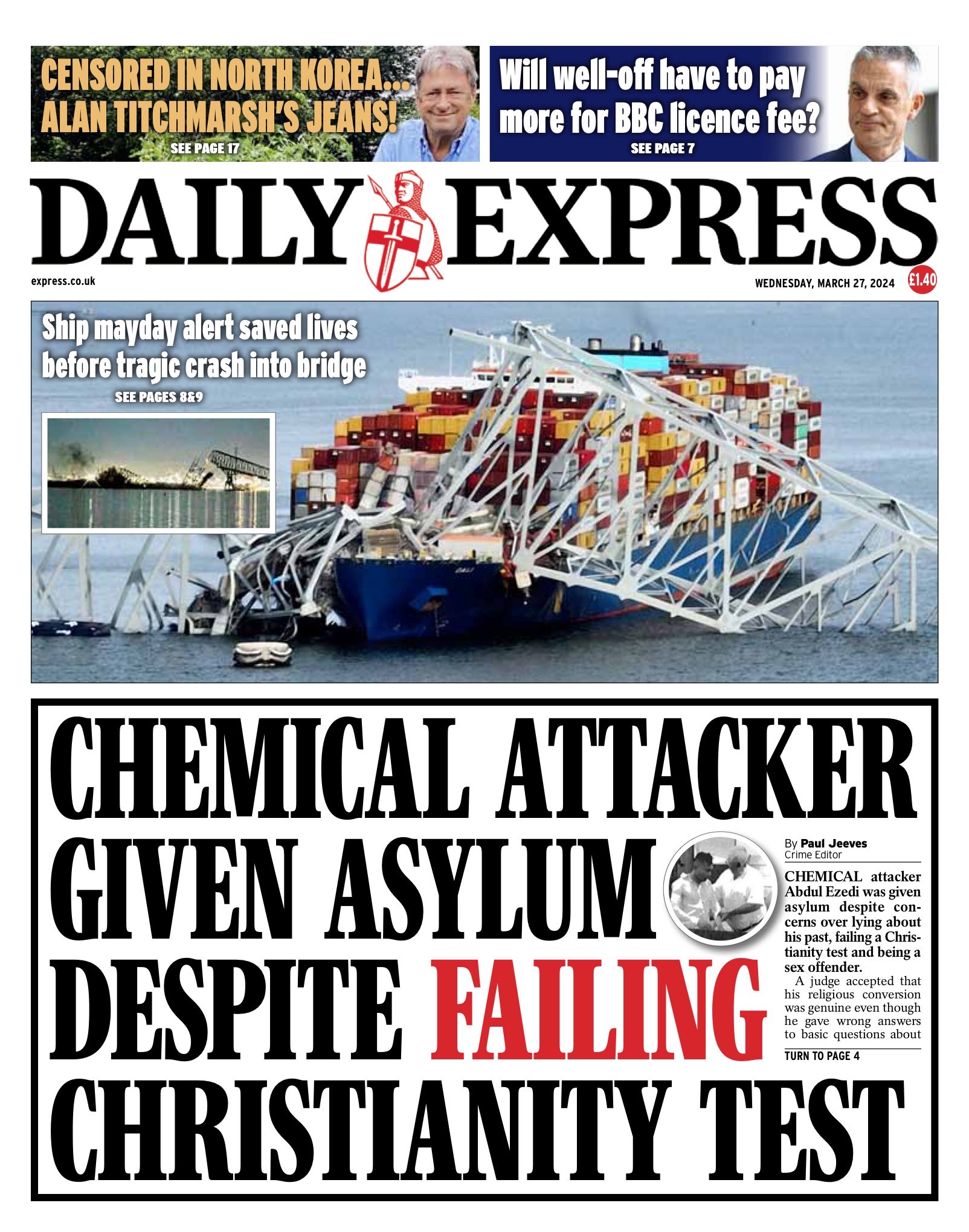 The Daily Express reveals that Abdul Ezedi was dishonest about his history during his asylum application.