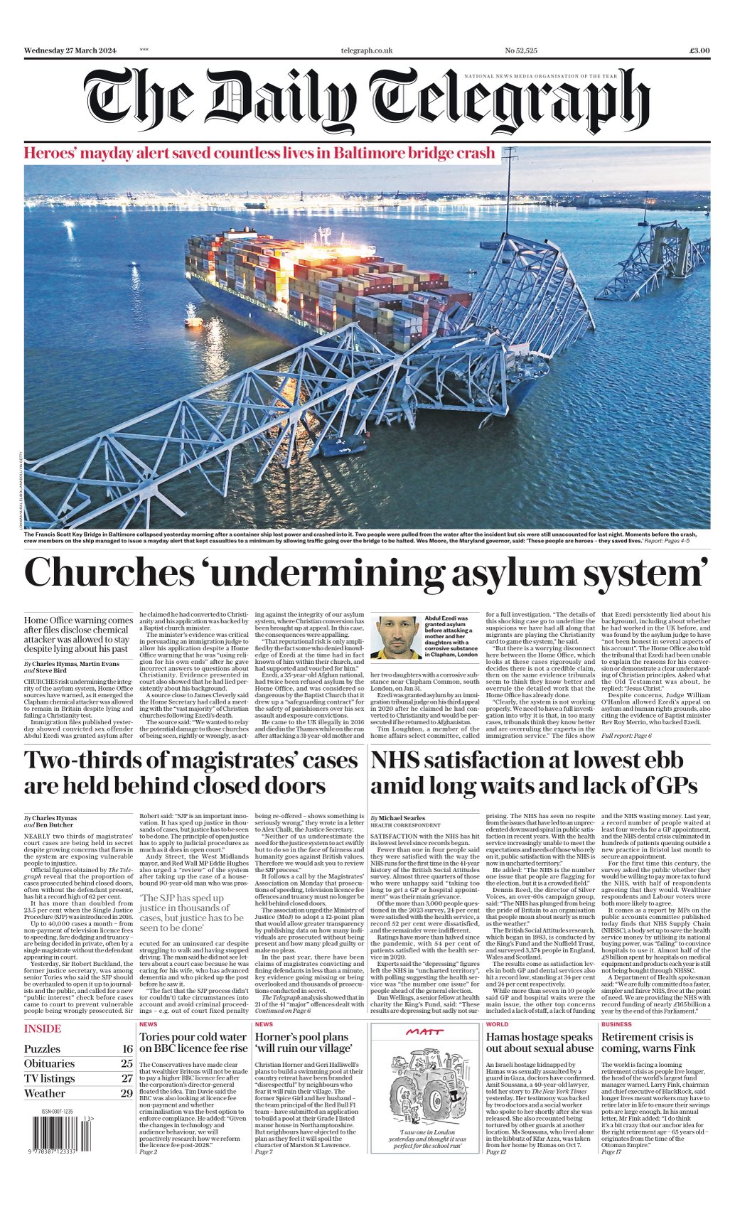 The Daily Telegraph reports on the potential risk churches pose to the UK’s asylum system.