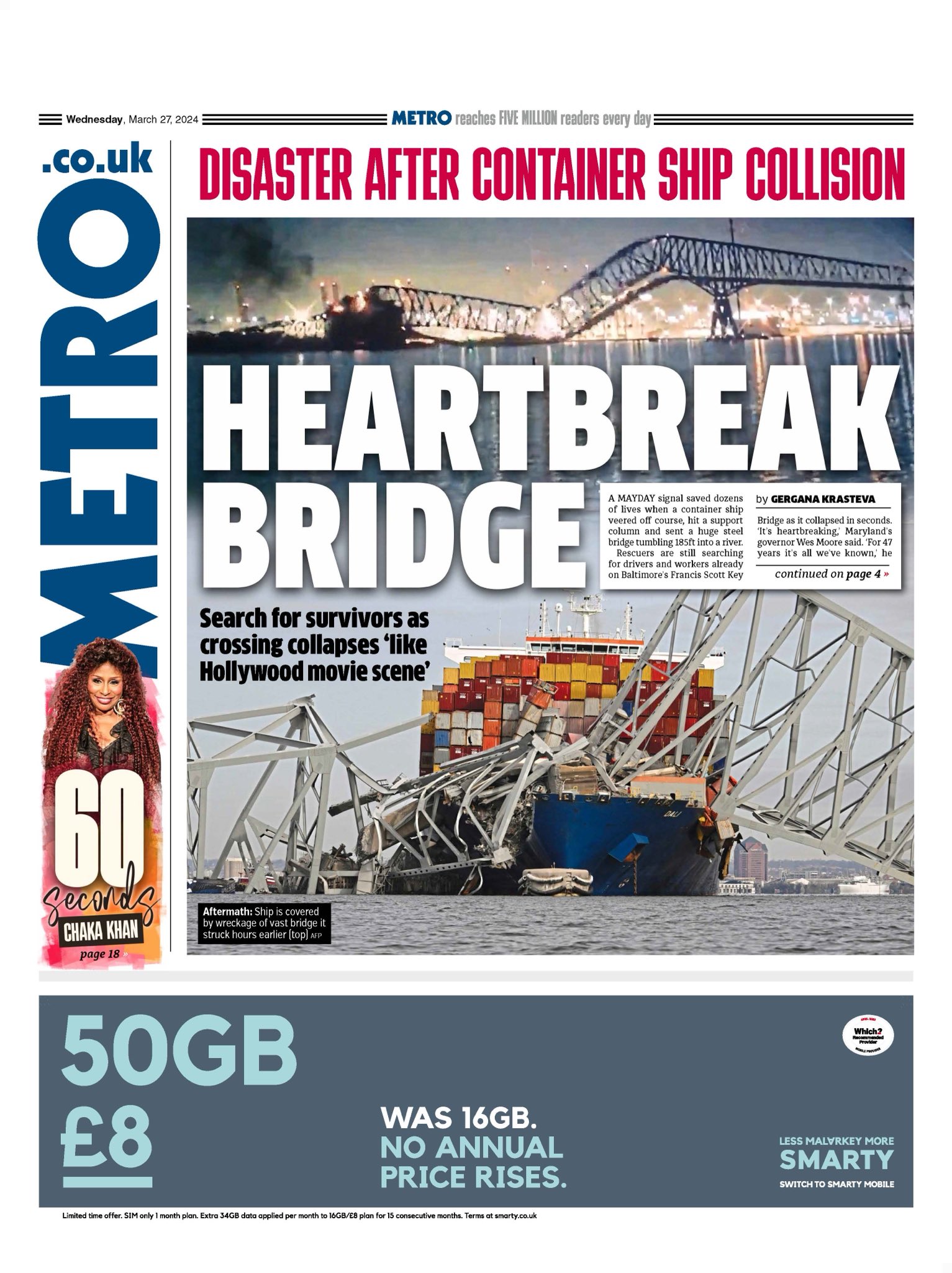 The Metro highlights how a mayday signal was instrumental in saving numerous lives during the Baltimore bridge collapse.