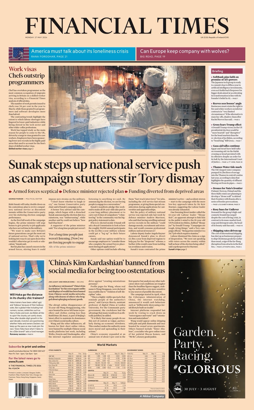 According to the Financial Times, Rishi Sunak is set to reinforce his contentious National Service scheme, encouraging employers to favour military veterans.