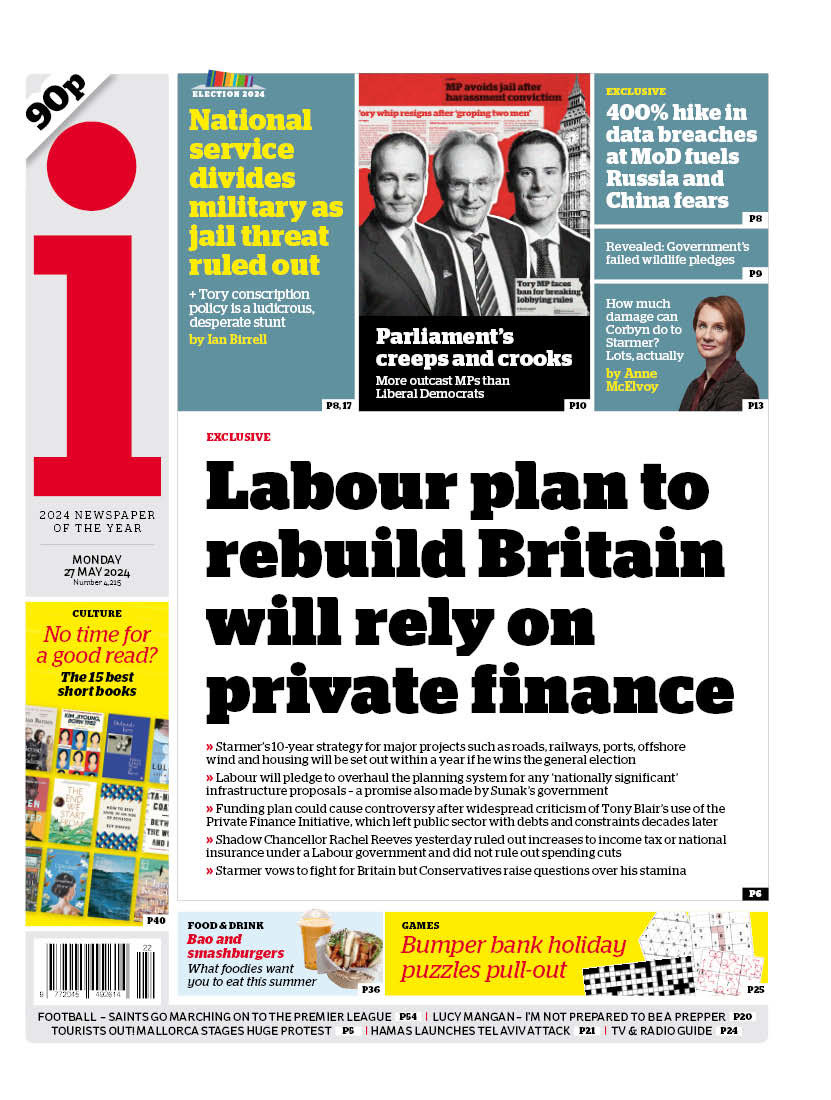 The i paper reveals Sir Keir Starmer’s plan to bolster UK infrastructure with private finance.
