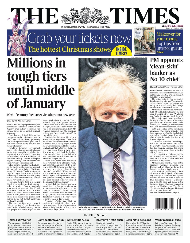 Tougher coronavirus restrictions impacting tens of millions of people throughout January are needed to avoid yet another national lockdown. The Times reports on that warning by Boris Johnson.Read more here.