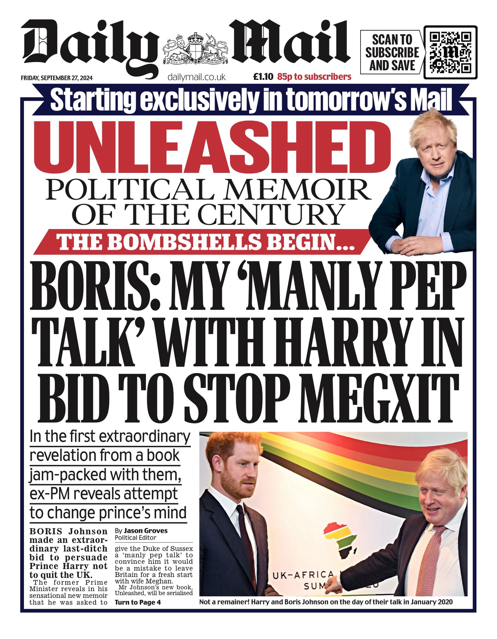 Boris Johnson reveals in his new memoir that he made a significant effort to convince Prince Harry not to leave the UK, describing it as a ‘manly pep talk’.