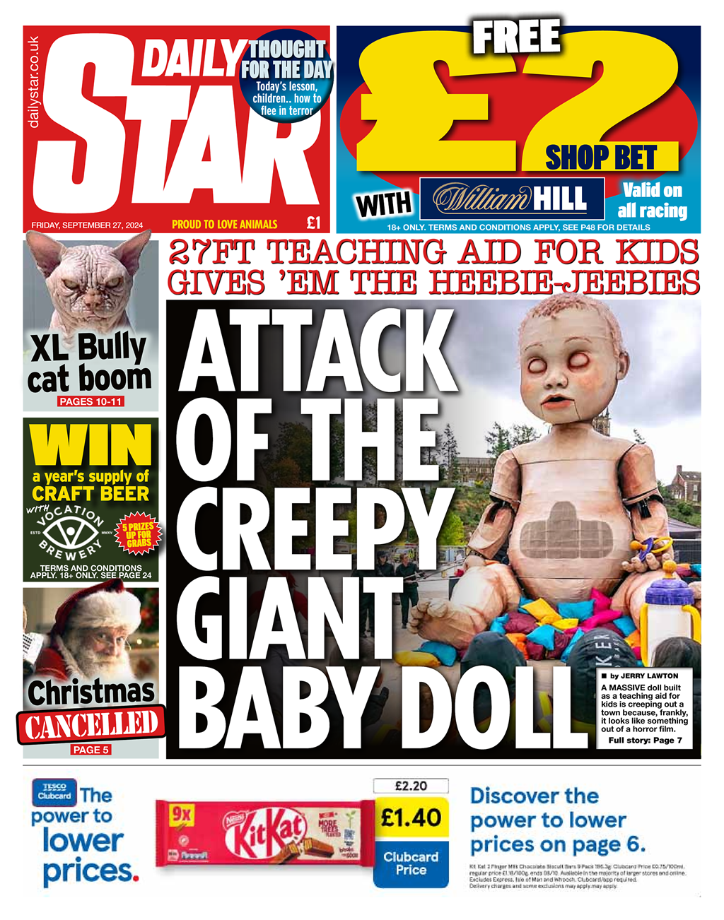 The Daily Star reveals that a giant educational doll is unsettling a town due to its eerie appearance.