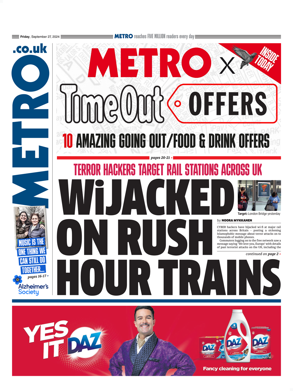 Hackers infiltrated WiFi at major railway stations to post Islamophobic messages, reports the Metro.