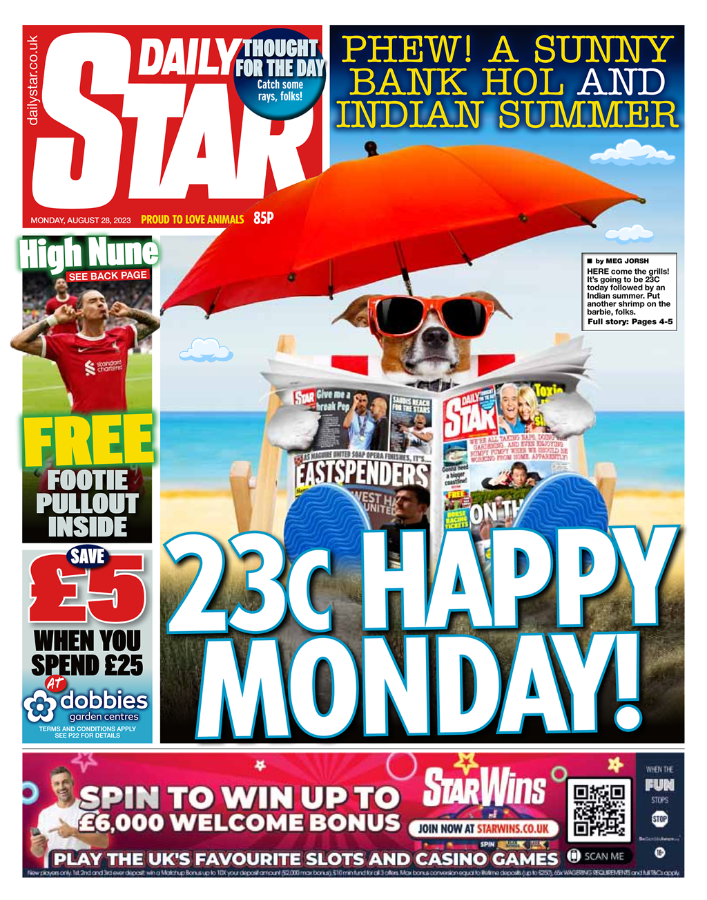 The Daily Star highlights unpredictable weather, predicting a temperature of 23C on the upcoming Monday.