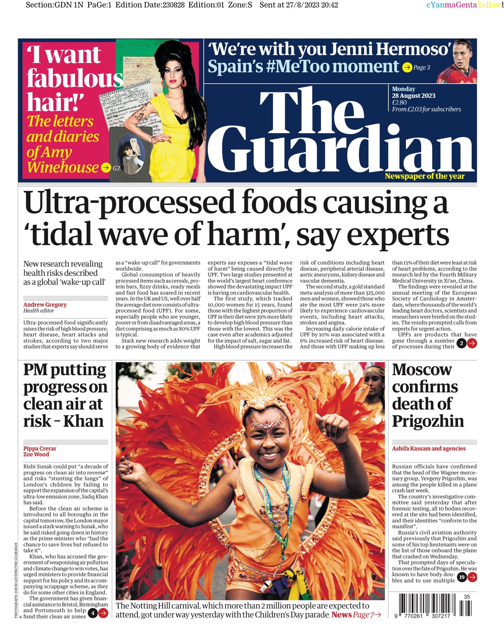 The Guardian features studies linking ultra-processed foods to cardiovascular risks.