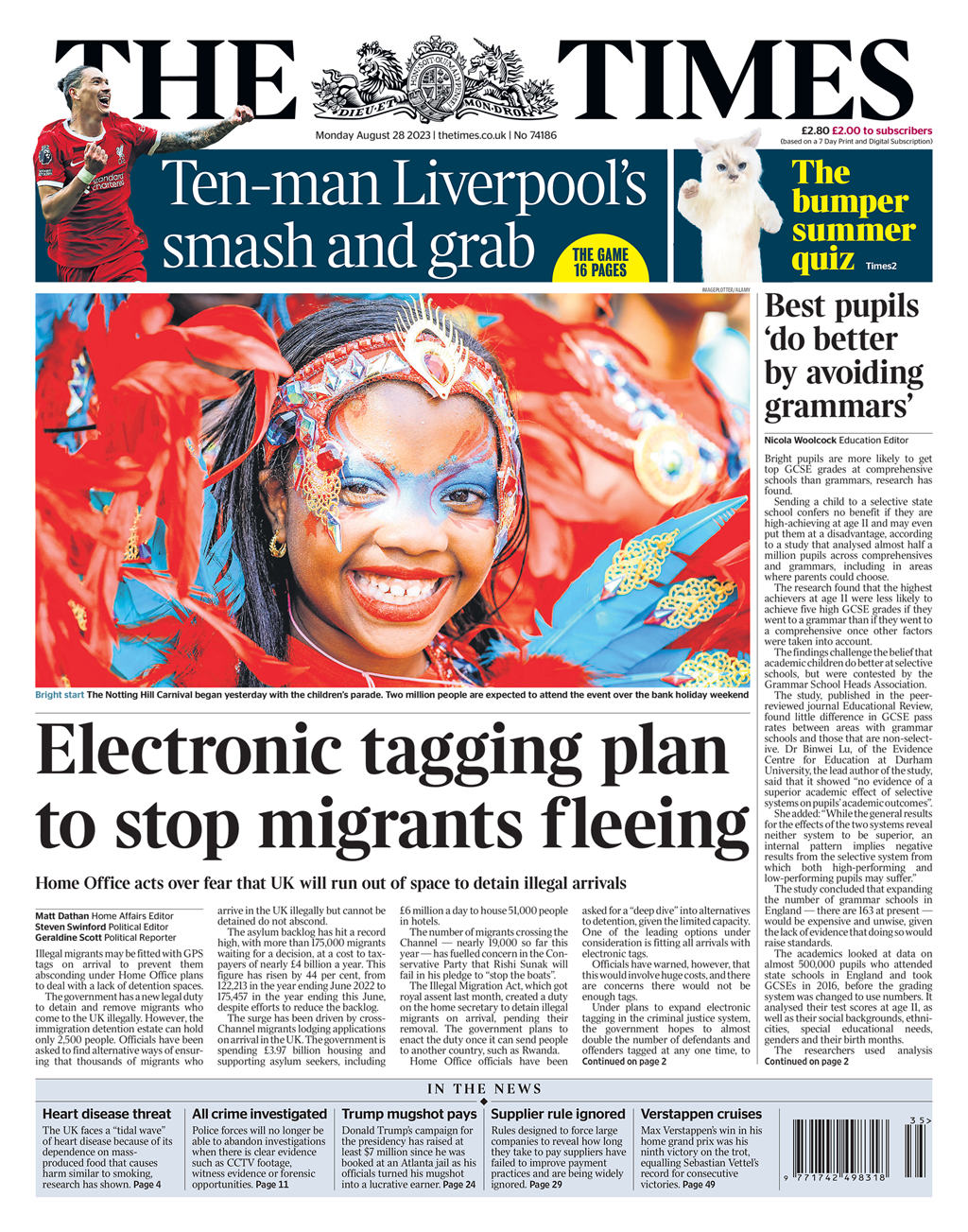 The Times reveals Home Office plans to tag illegal migrants like prisoners to alleviate detention centre overcrowding and diminish case backlogs.