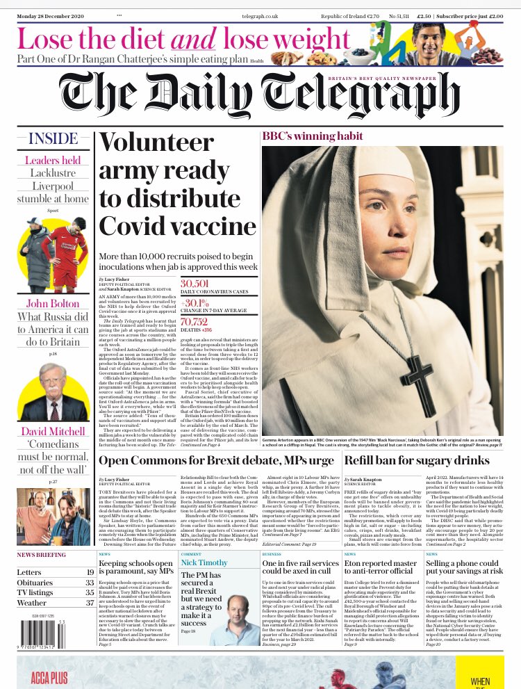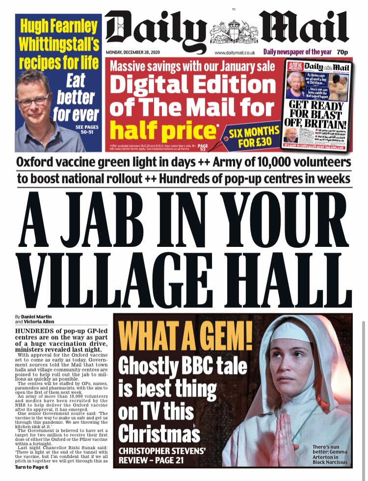 There will be two million doses of the Oxford-AstraZeneca vaccine available for the most vulnerable and the elderly within two weeks of its approval, the Daily Express says.Here’s what the boss of AstraZeneca has had to say.
