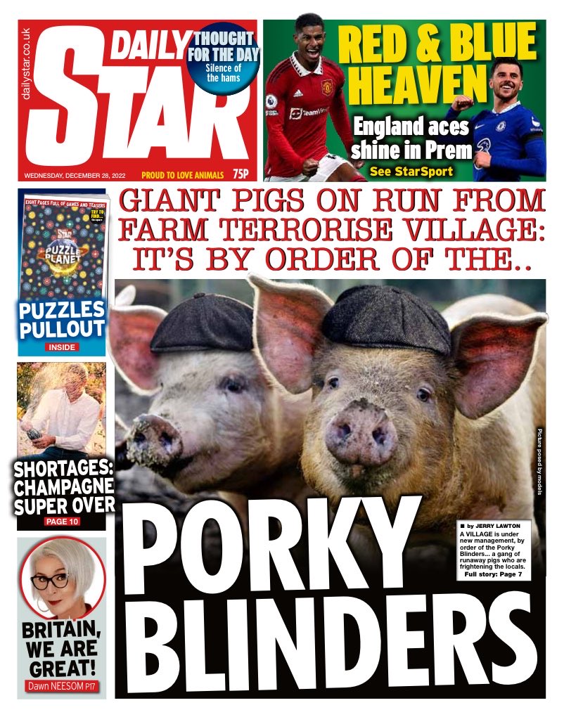 Residents of a village are being terrorised by a gang of runaway pigs, according to the Daily Star.