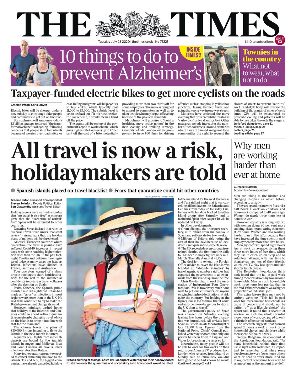 The Times is leading with the government’s warning that all travel poses a risk as it keeps a strict eye on possible extensions to coronavirus restrictions.