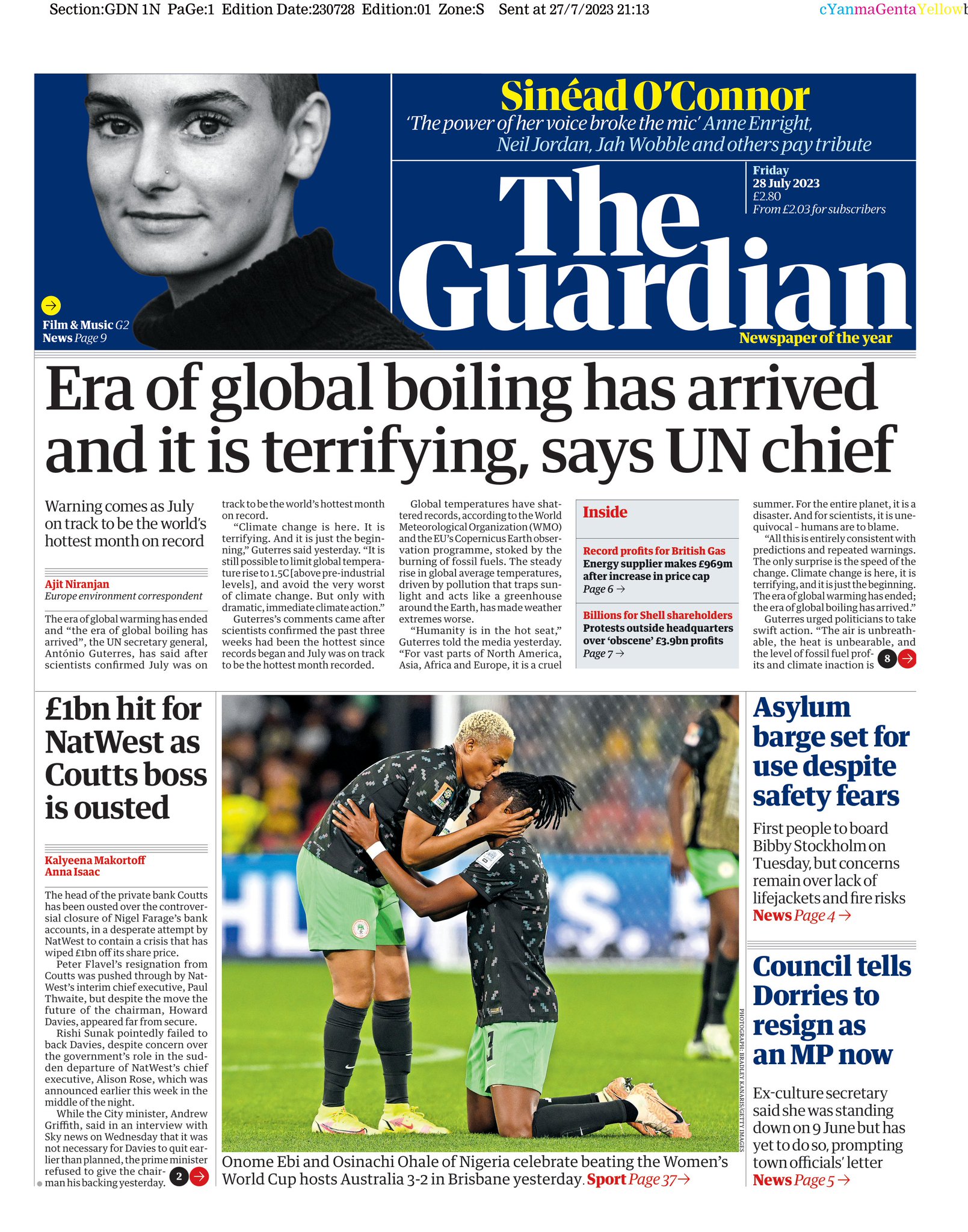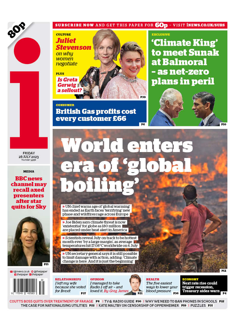 The i highlights UN Secretary General Antonio Guterres’ pronouncement about the dawn of the ‘era of global boiling’.