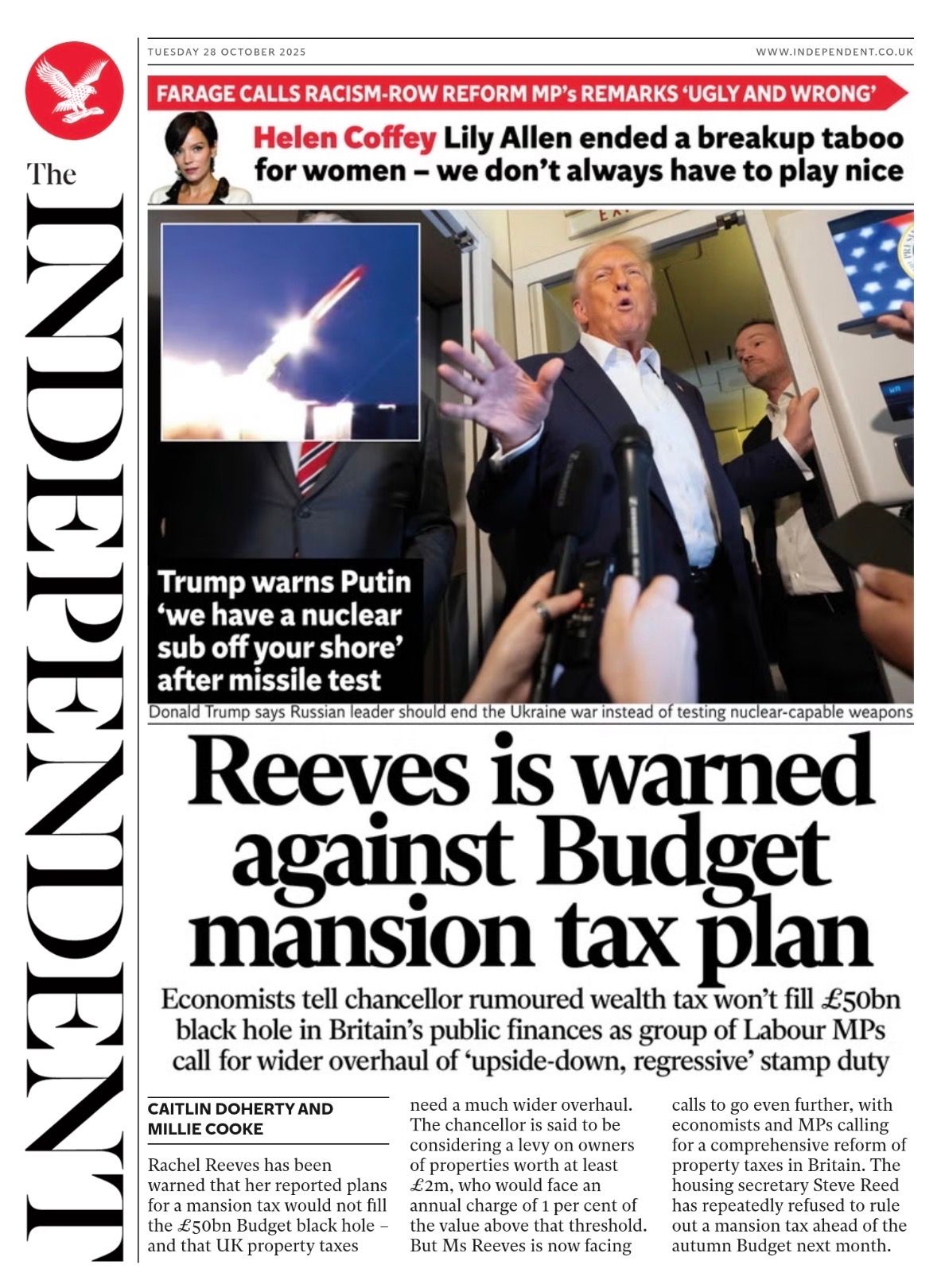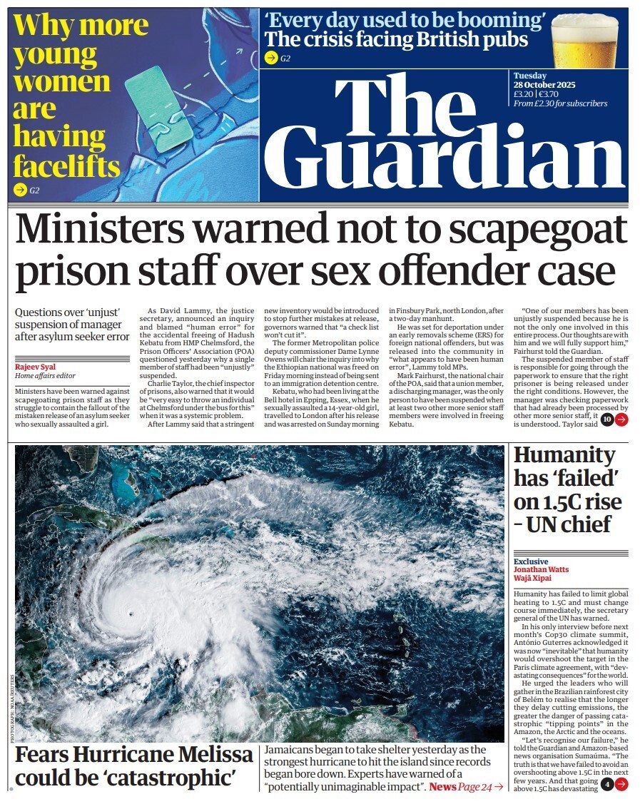 Daily Express Front Page 28th of October 2025