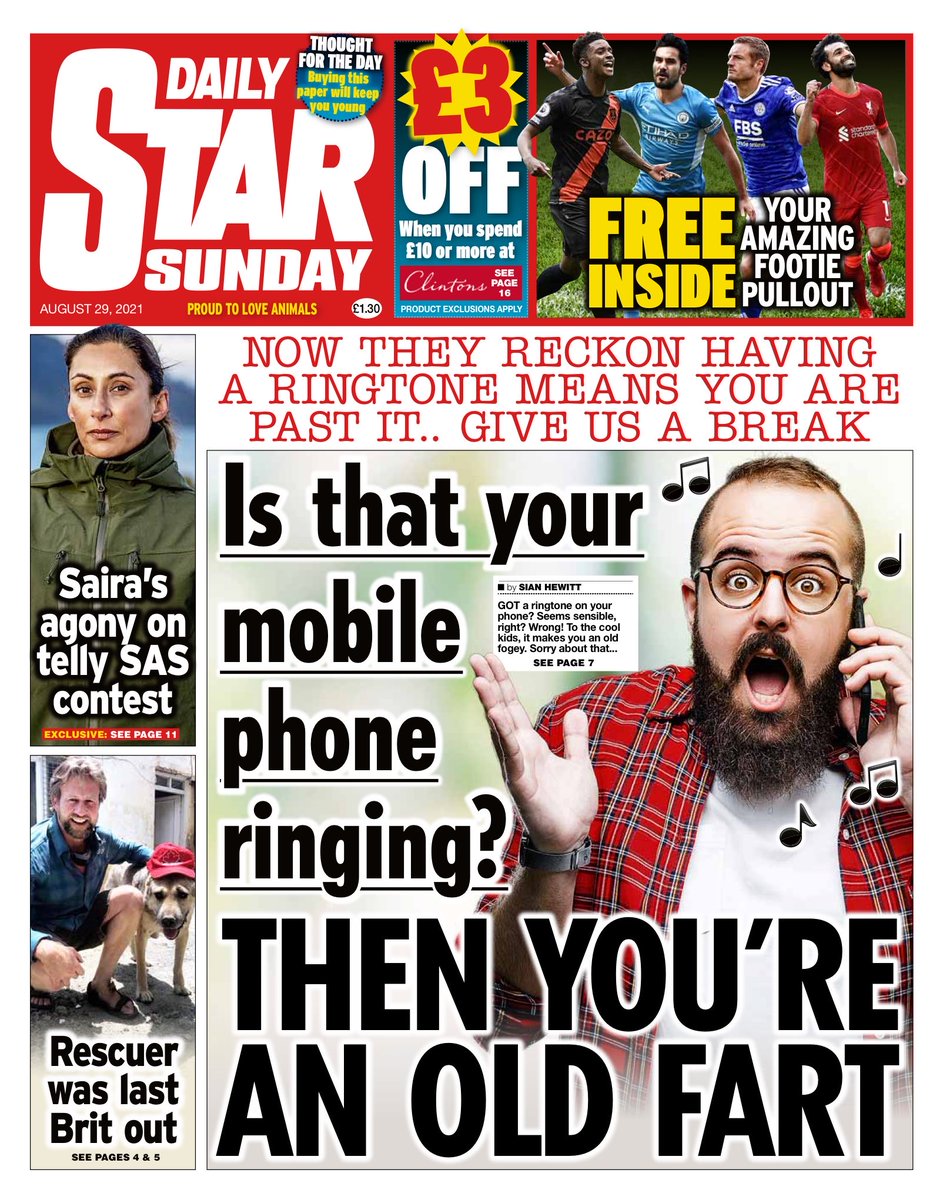 You’re an “old fart” if your mobile phone has a ringtone – that’s the news from the Daily Star Sunday.