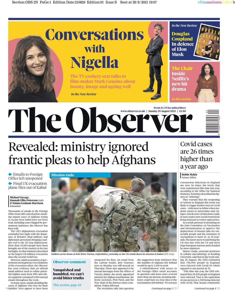 The Observer reports that thousands of emails to the Foreign Office detailing cases of Afghans trying to escape from Afghanistan have not been read, including cases flagged by government ministers.