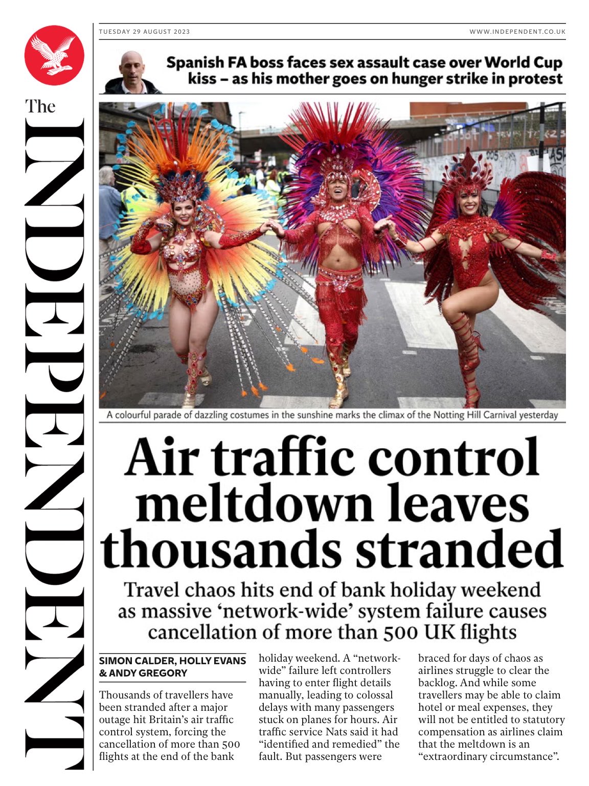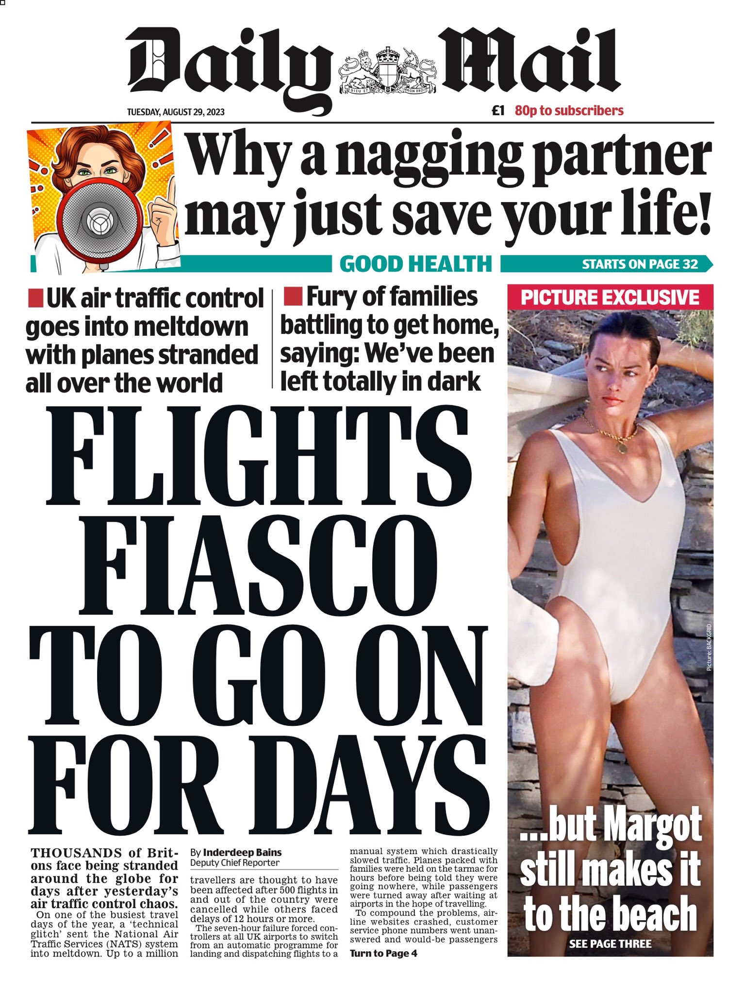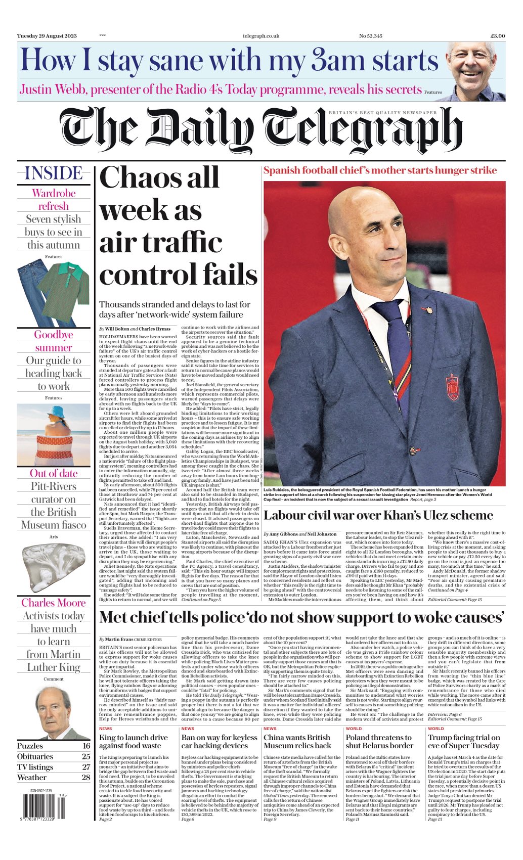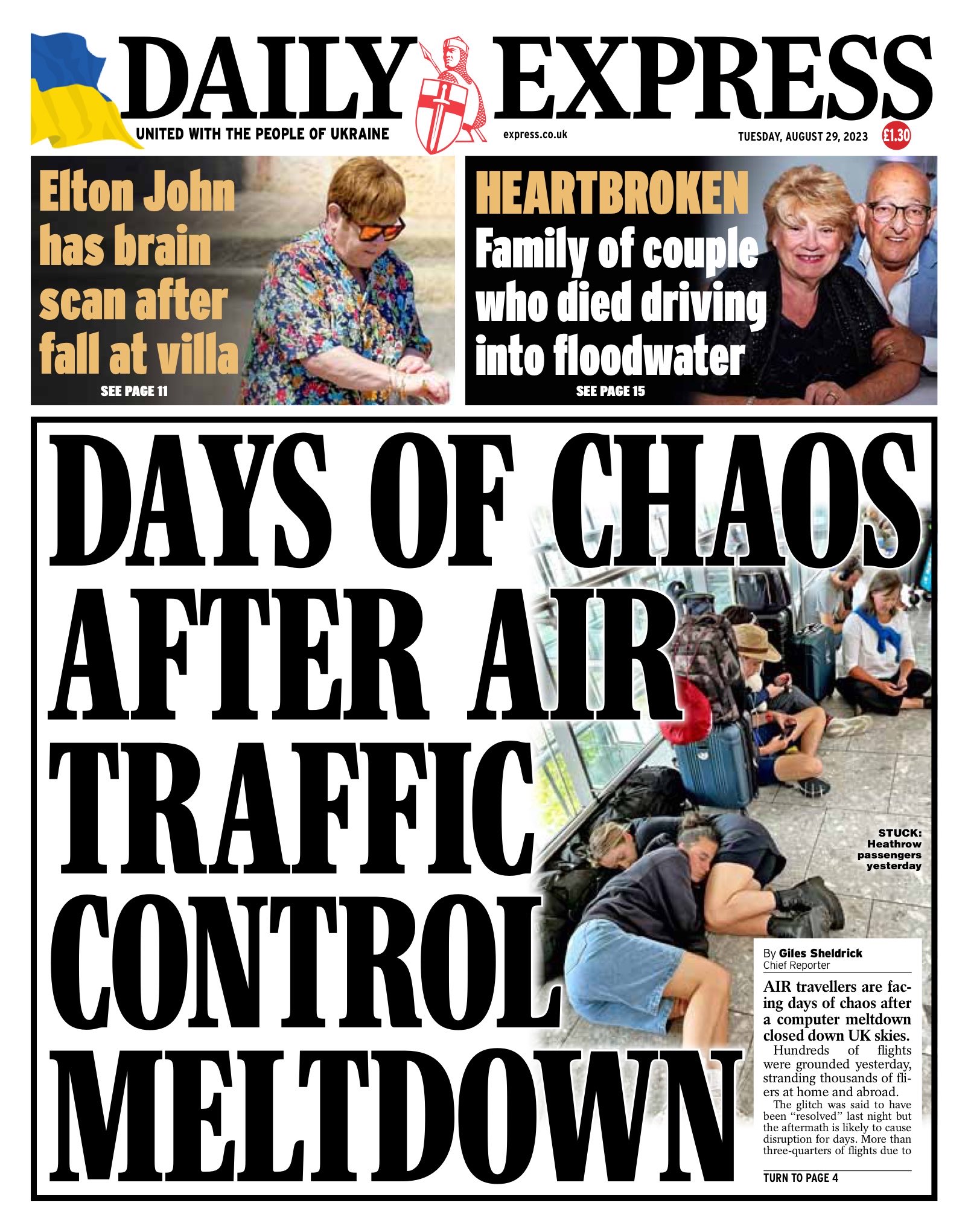 The Daily Telegraph warns holidaymakers to brace for flight chaos until week’s end following a network-wide failure of the UK’s air traffic control system.