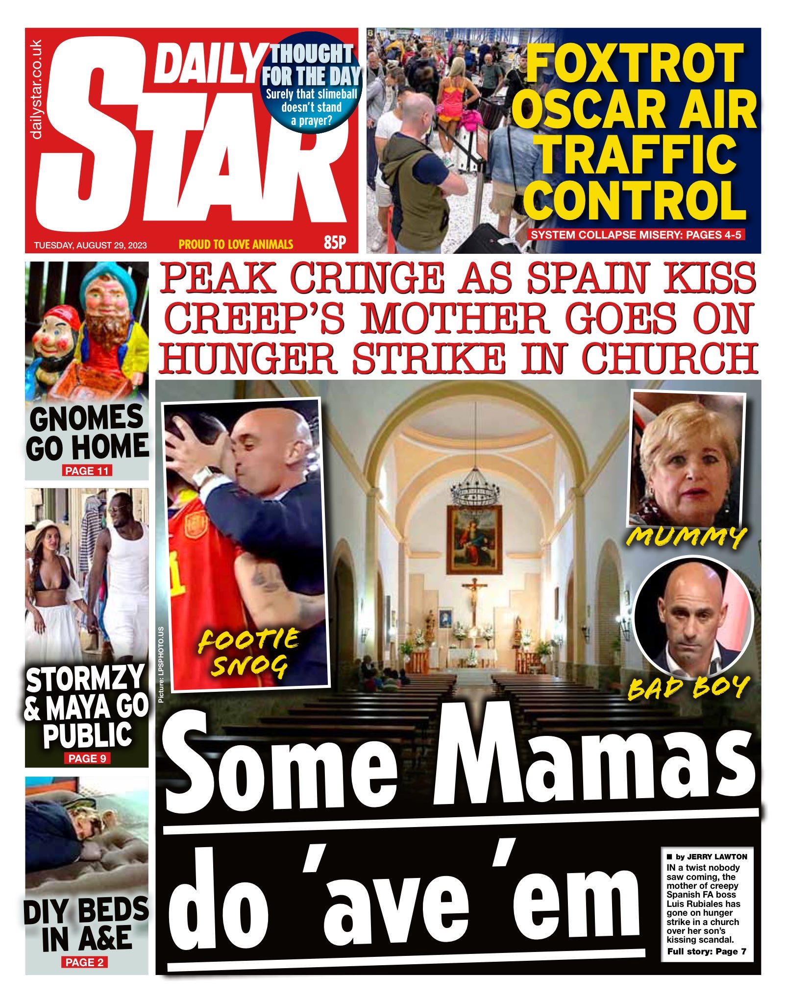 The Daily Star reports on the mother of the Spanish football federation president who has begun a hunger strike amid calls for her son’s resignation.