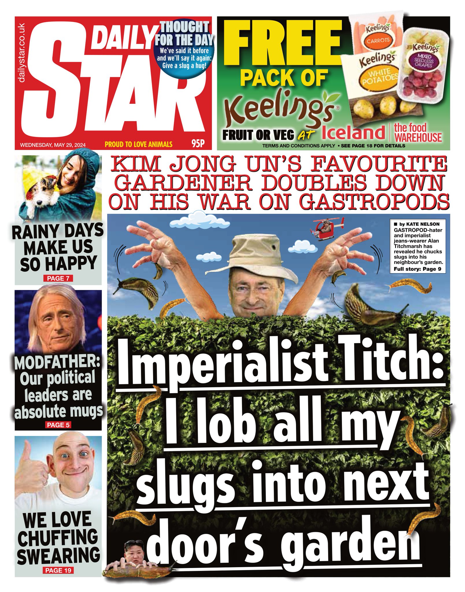 The Daily Star reports on gardener Alan Titchmarsh’s unusual method of dealing with slugs in his garden.