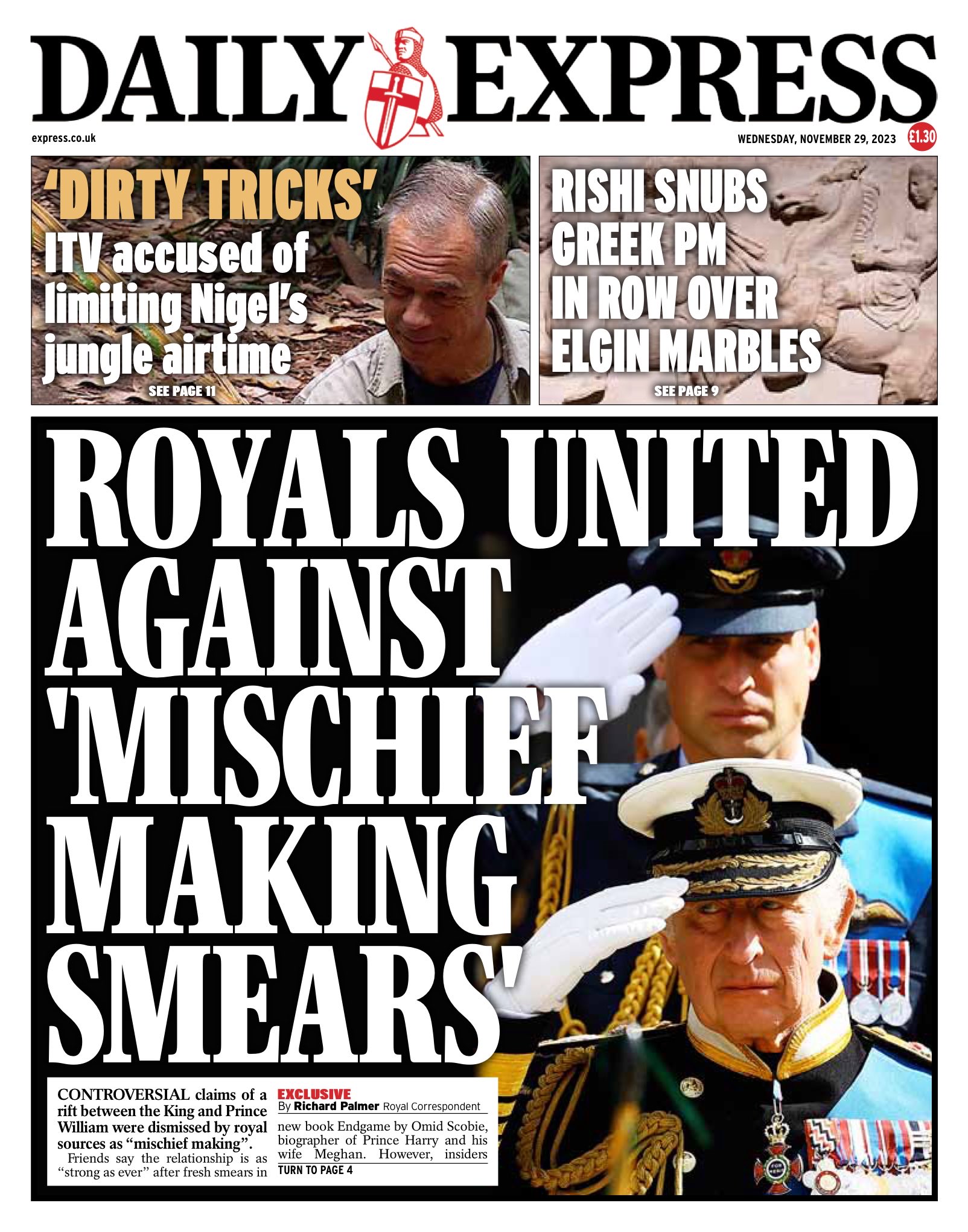 The Daily Express highlights the unity of the Royal Family in the face of “mischief making smears” in a new book.