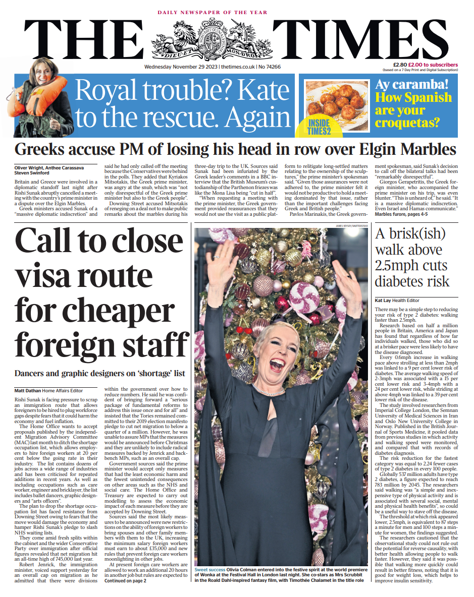 The Times reports on the mounting pressure on the Prime Minister to eliminate a visa route that permits hiring foreign workers at lower wages.