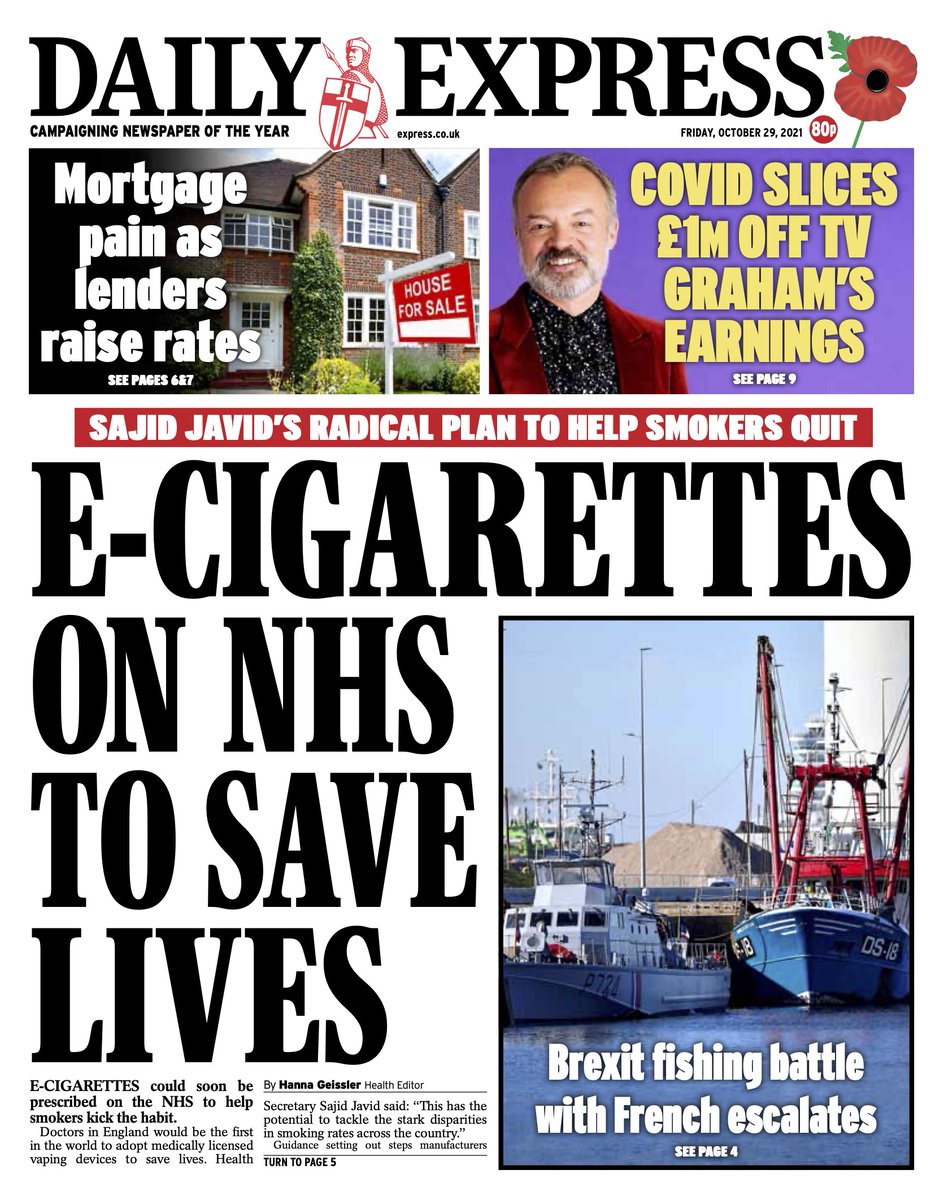 The Daily Express says e-cigarettes could soon be prescribed on the NHS to help smokers kick the habit.