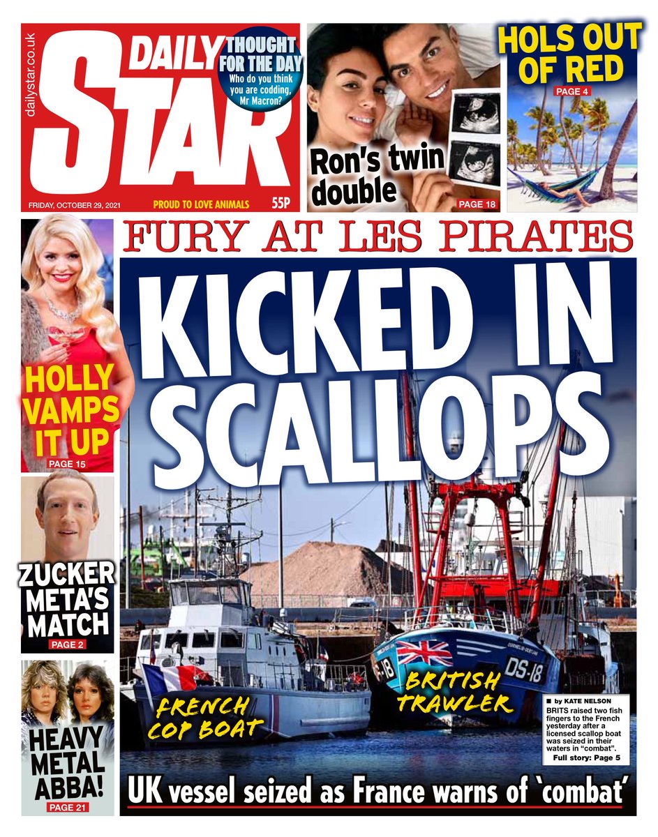 The seizure of a UK vessel in France is the Daily Star’s top story.