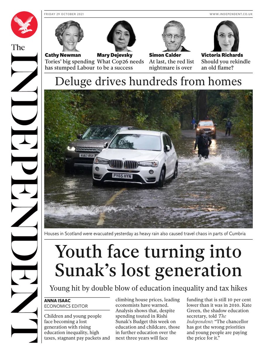 China and India’s rejection of calls to set tough new climate targets ahead of COP26 is the lead story in the Financial Times.
