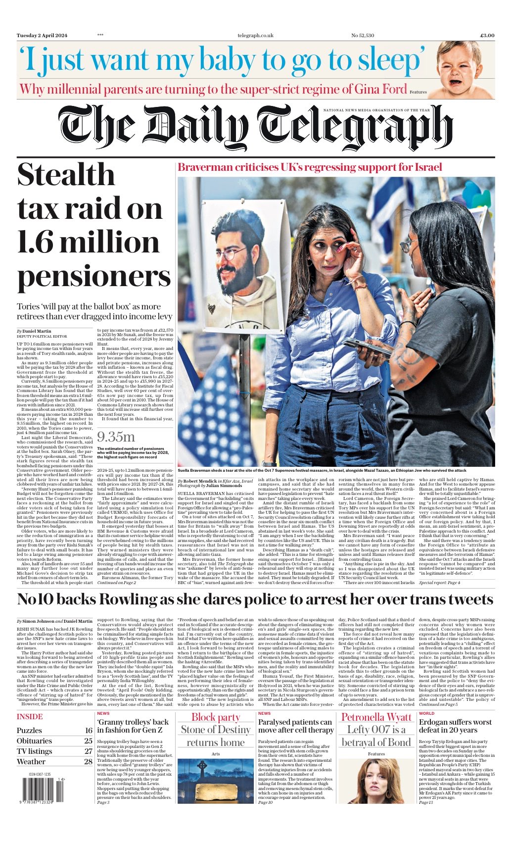 The Daily Telegraph reports on the impending income tax burden on an additional 1.