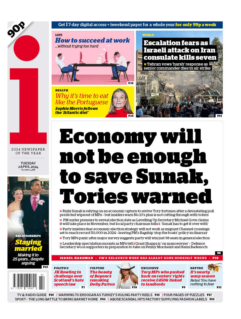 Tory insiders warn in the i paper that Rishi Sunak’s position may not be saved by an economic upturn.