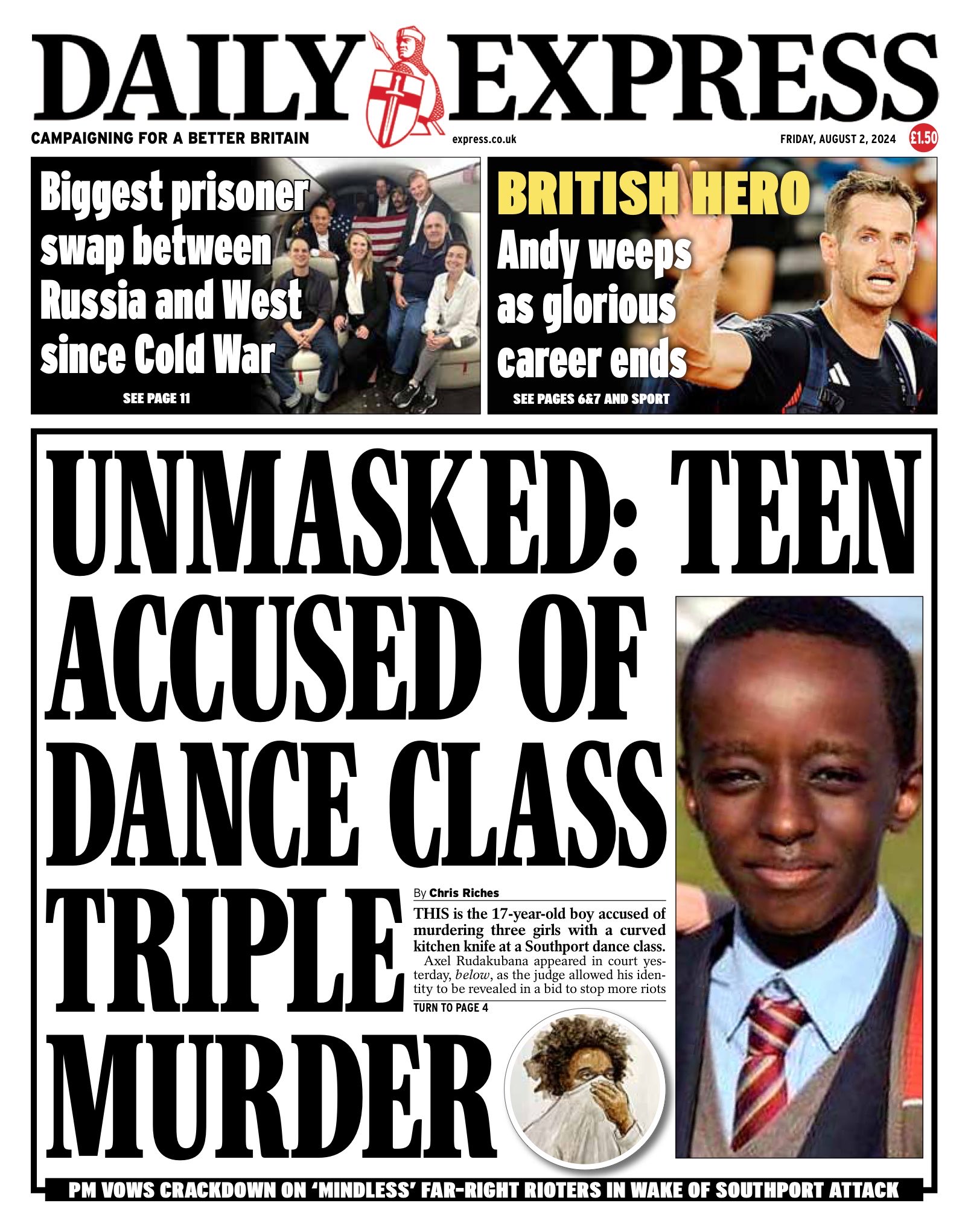 Metro reports on the court naming of the teenager accused in the Southport stabbings.