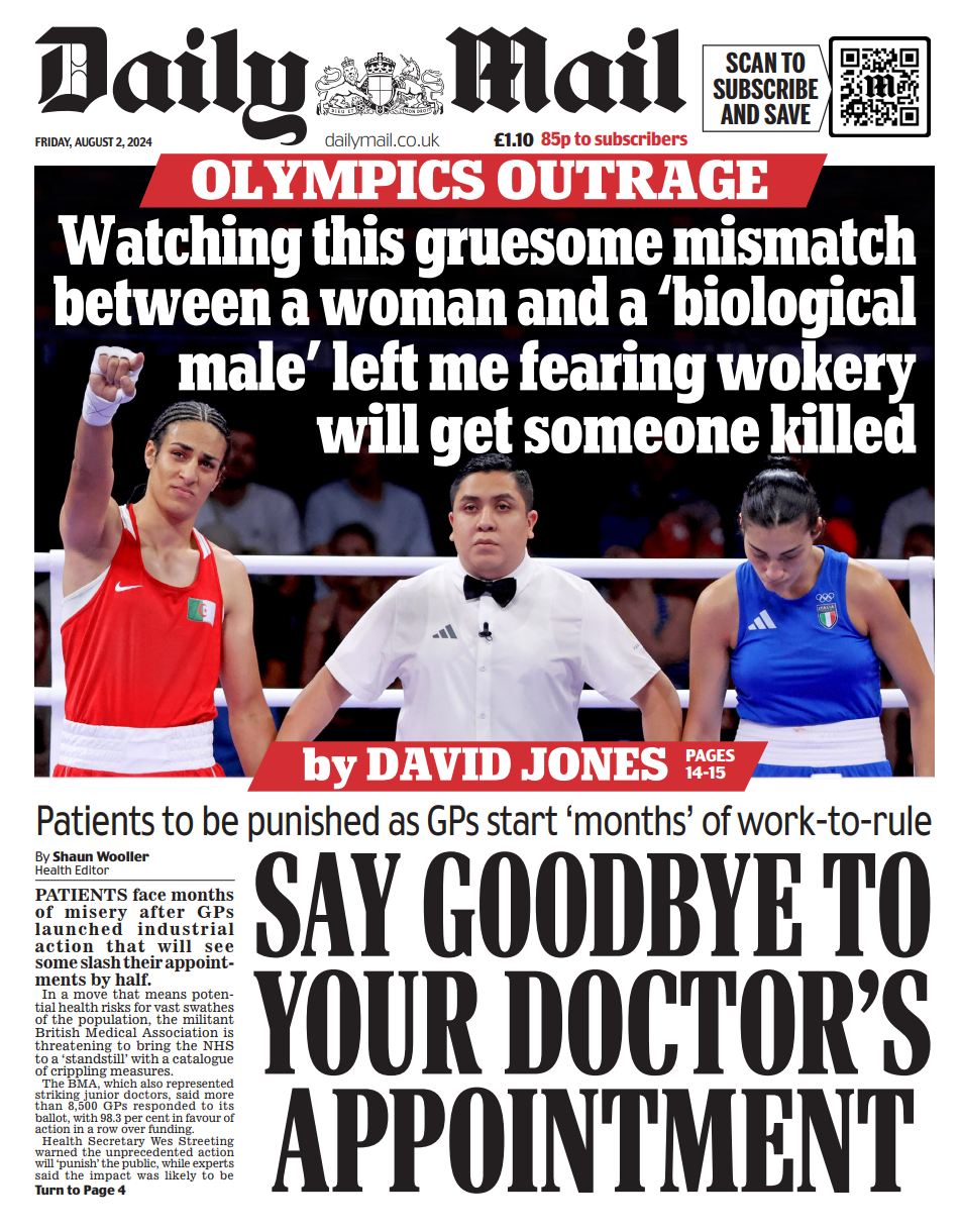 The Daily Mail reports potential “misery” for patients as GPs plan industrial action, potentially reducing available appointments.