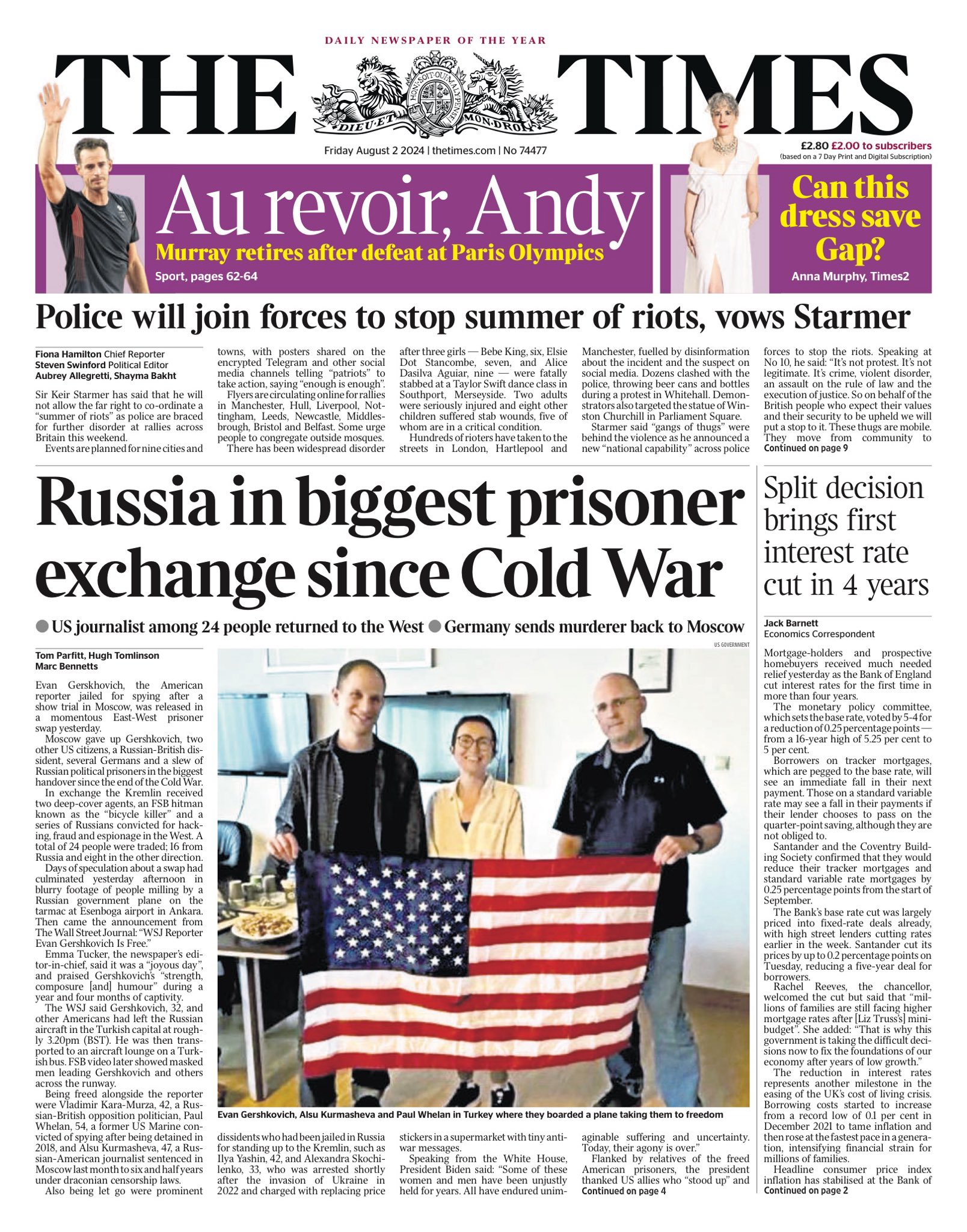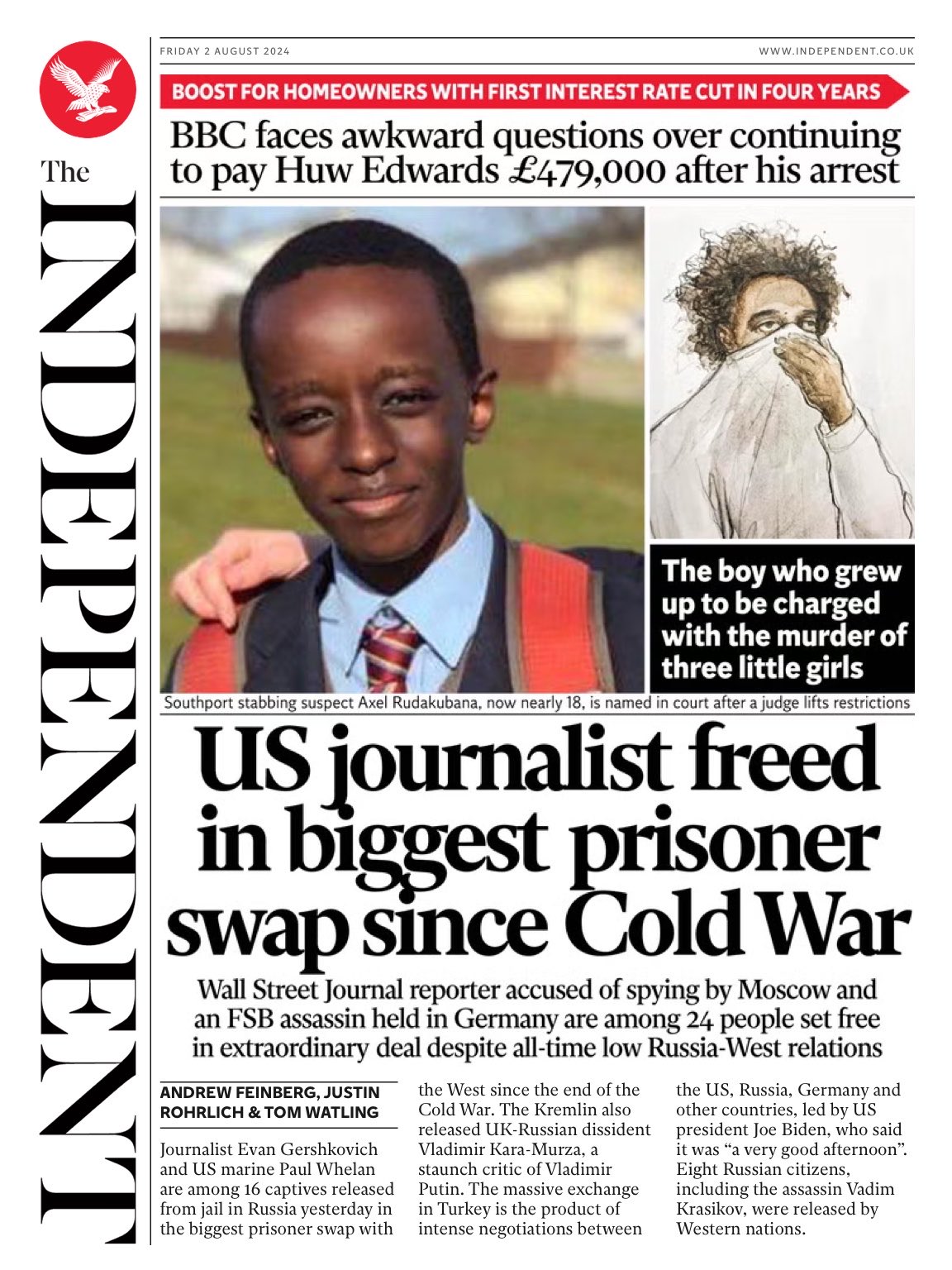 Russia has engaged in its biggest prisoner exchange since the Cold War, returning 24 people to the West, including a US journalist, while Germany has sent a convicted murderer back to Moscow.