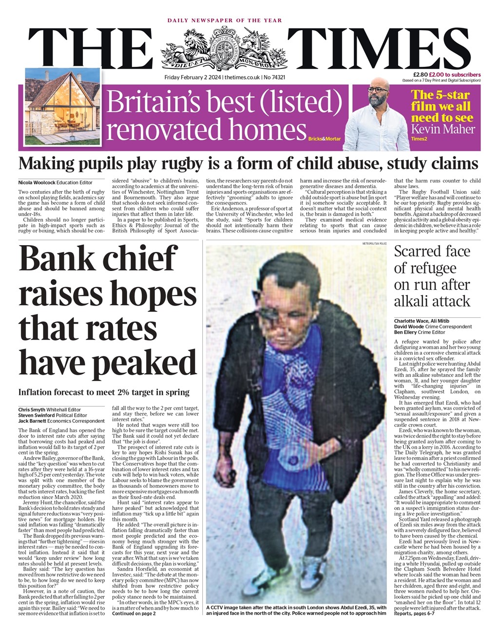 The Times reports on the Bank of England’s potential interest rate cuts as borrowing costs peak.