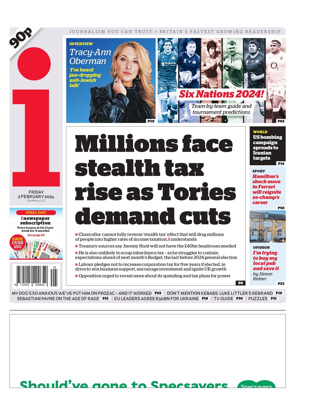 The i paper highlights a stealth tax hike impacting millions, despite Tory demands for cuts.