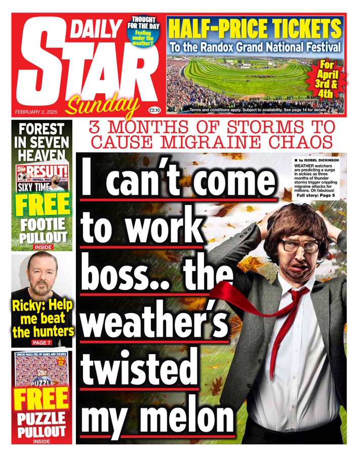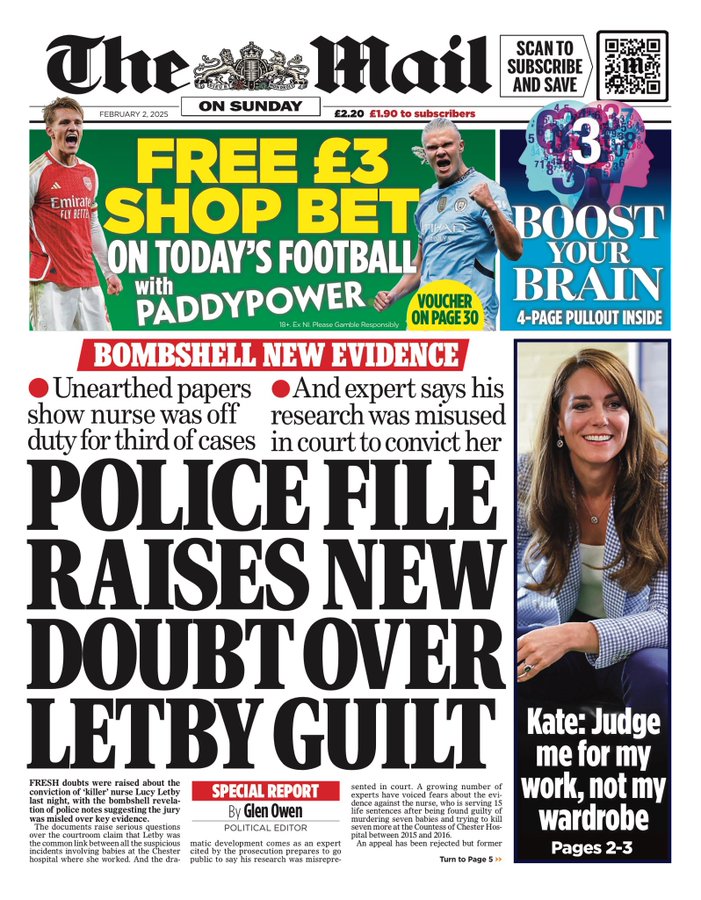 Sunday Mirror Front Page 2nd of February 2025