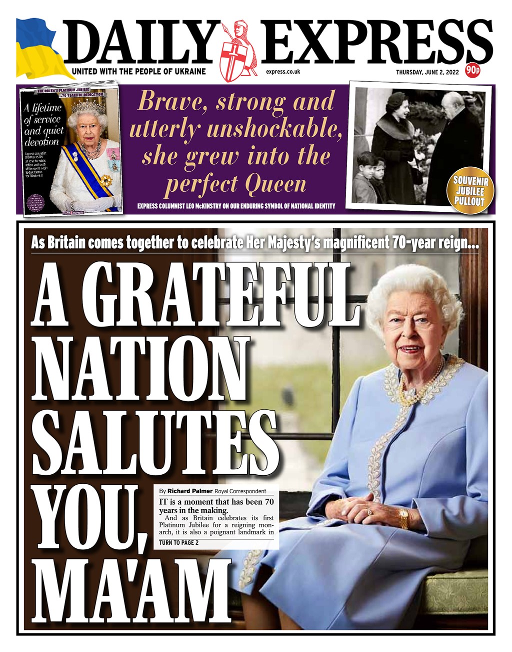As the Jubilee celebrations begin, the Express features a new portrait of the Queen honoring the monarch.
