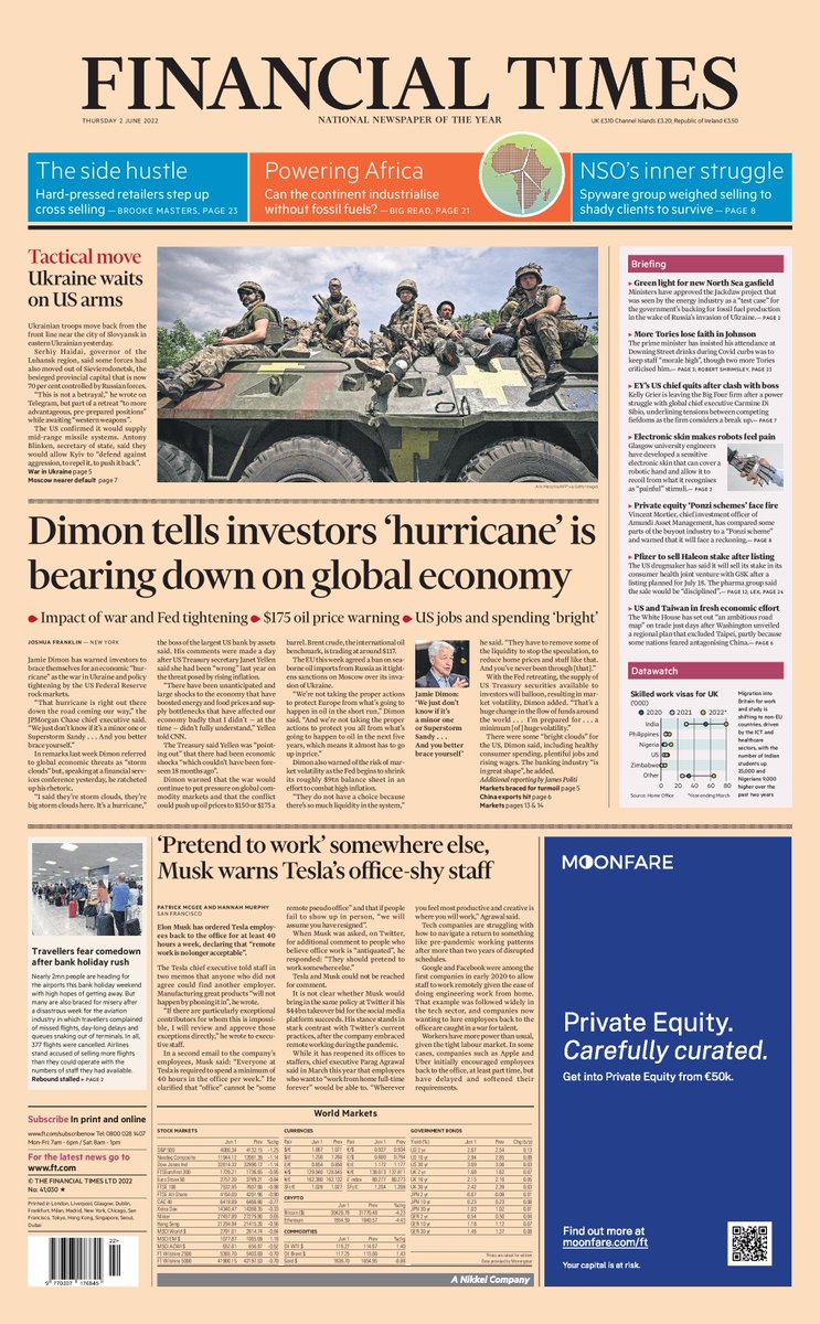Jamie Dimon, the CEO of JPMorgan Chase, has warned investors to prepare for an economic “hurricane”, according to the FT.