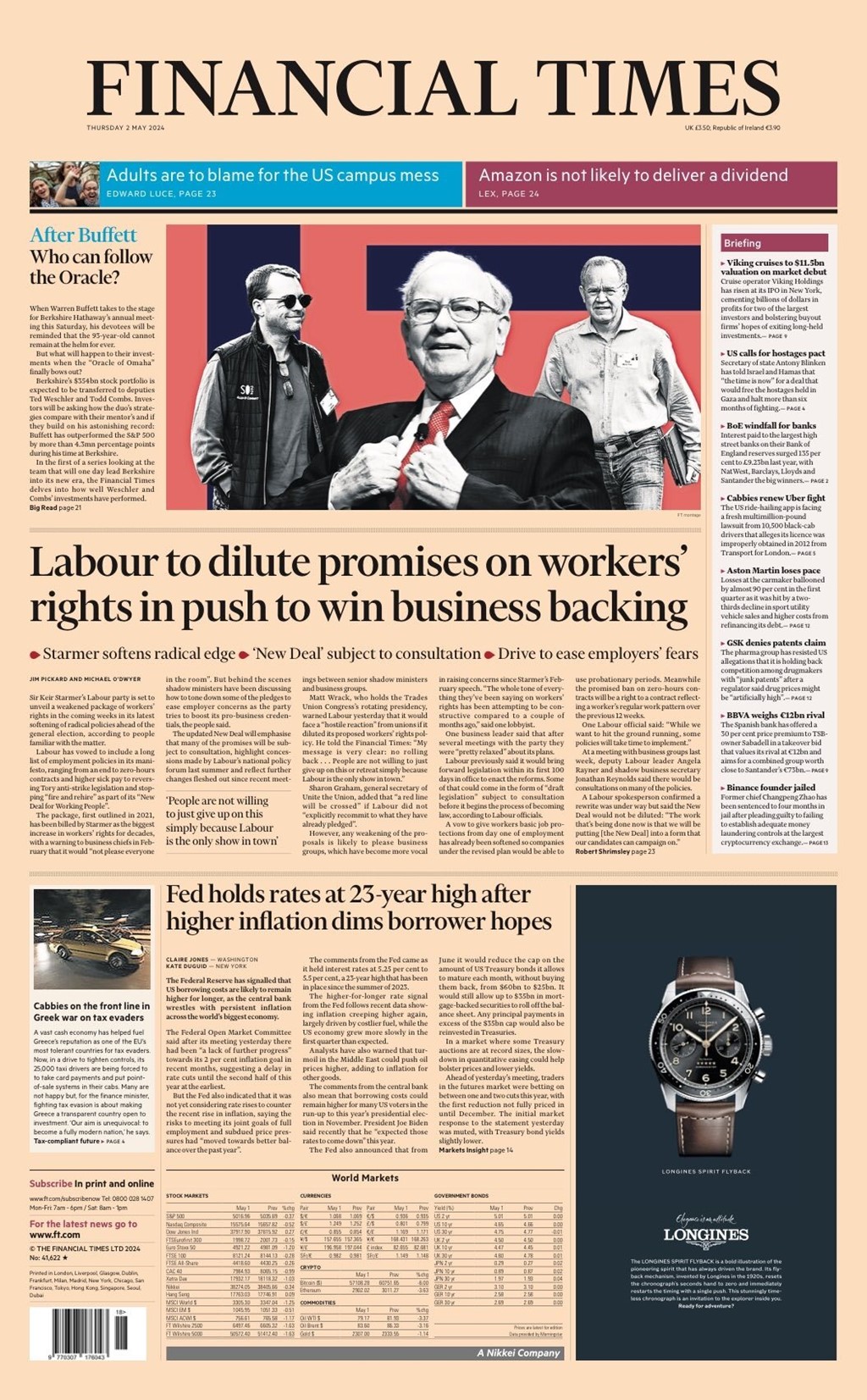 The Financial Times reports that Labour is poised to unveil a diluted set of workers’ rights.