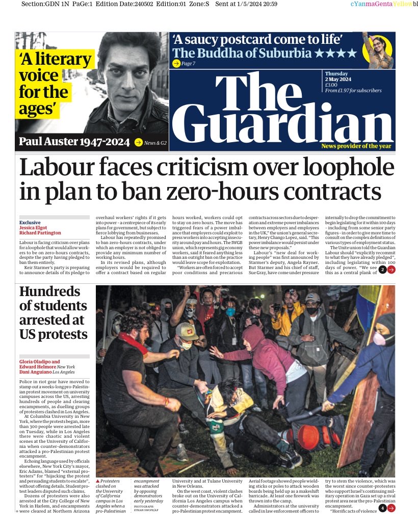 The Guardian highlights the backlash Labour is facing over a loophole allowing zero-hours contracts.