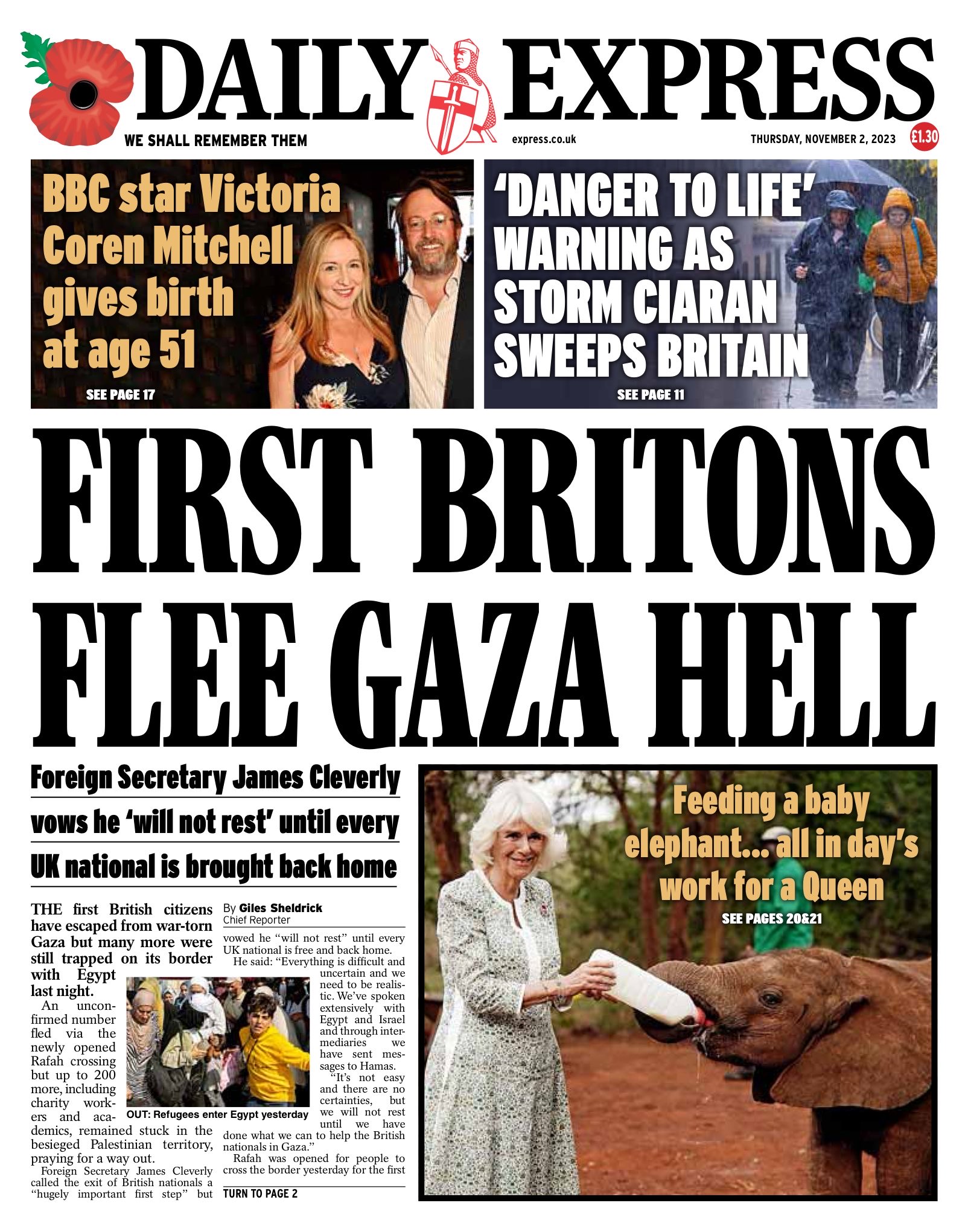 The Daily Express reports on the first UK citizens in Gaza gaining permission to cross into Egypt.