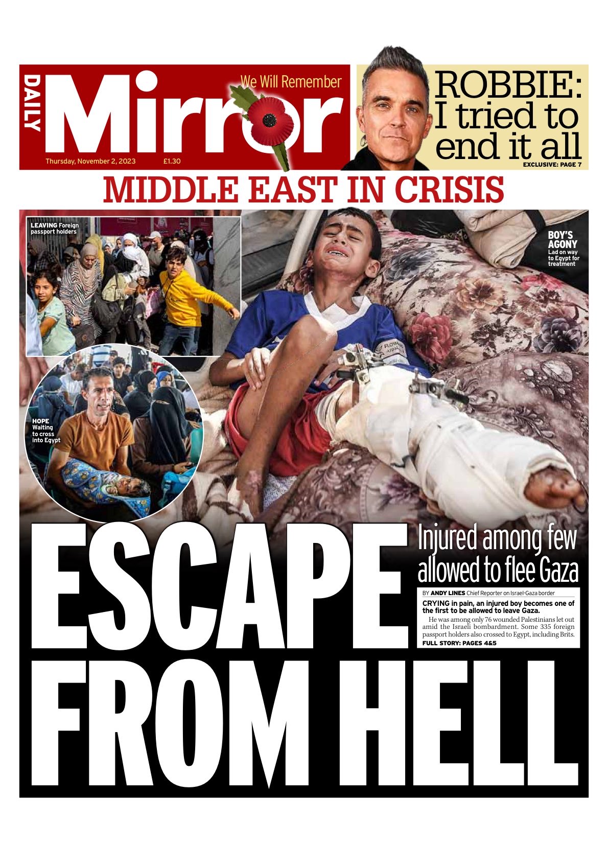 The Daily Mirror leads with the story of the Rafah crossing’s opening between Gaza and Egypt.