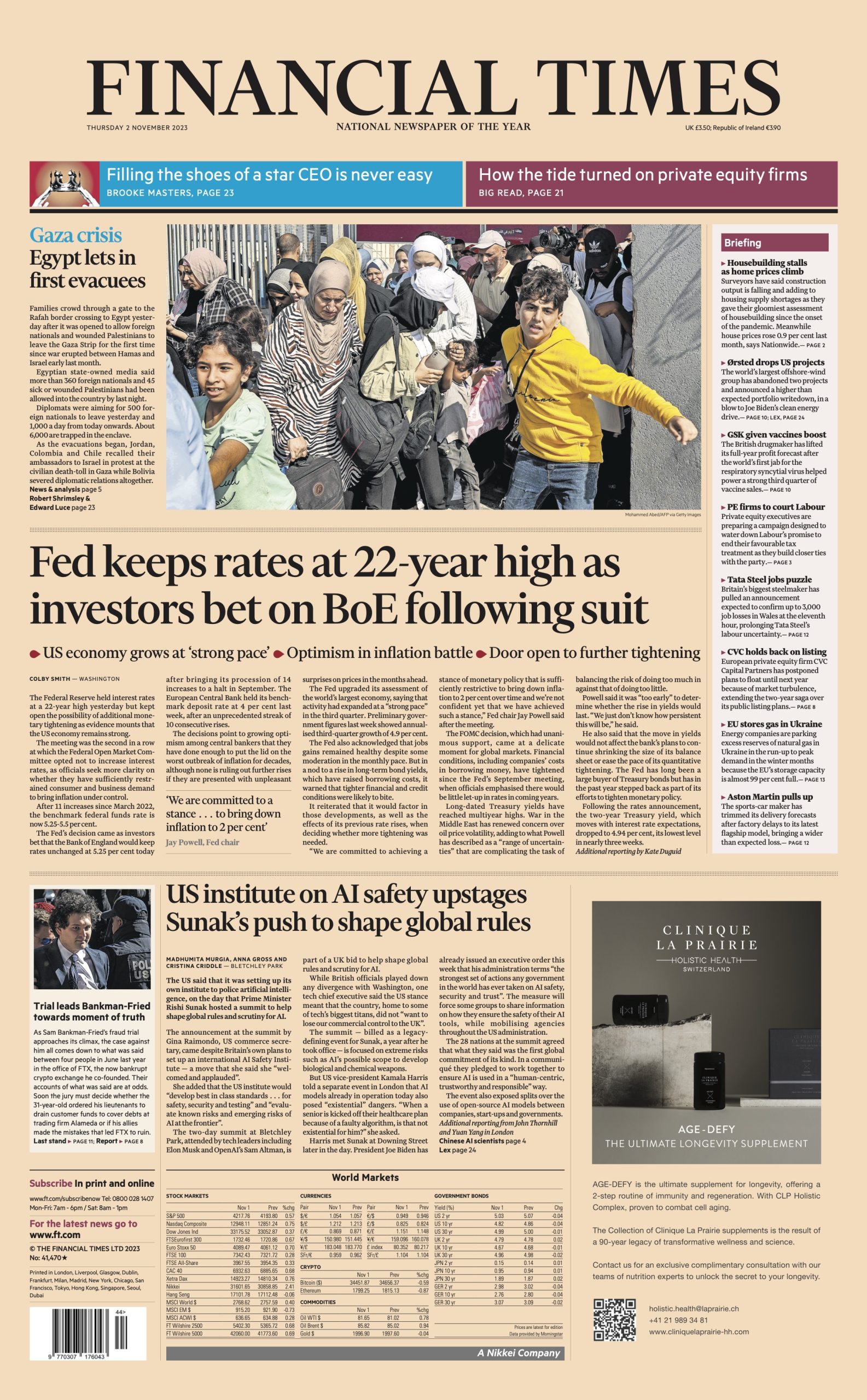 The Financial Times reports on the US Federal Reserve’s decision to maintain high interest rates, sparking speculation about the Bank of England’s next move.