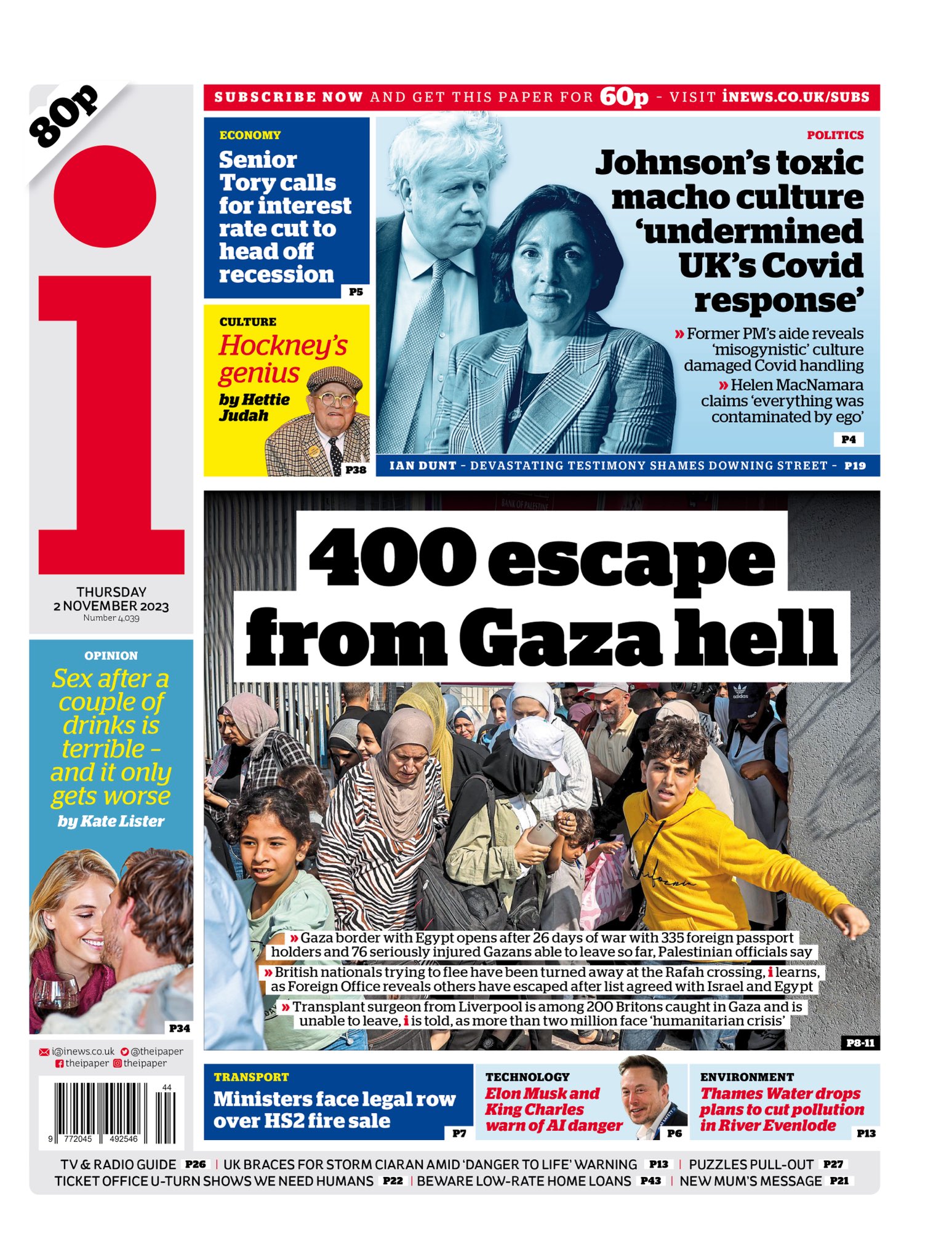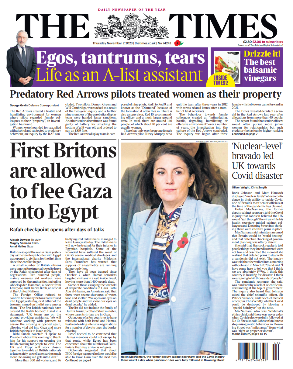The Times reports on the recent opening of the Rafah crossing between Gaza and Egypt, noting the exit of several Britons.