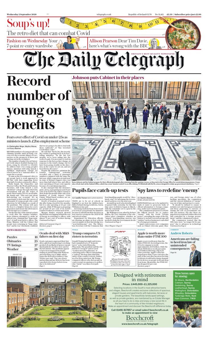 The Daily Mail questions why children are back at school but many of the UK’s largest commuter rail stations and roads were empty on Tuesday.